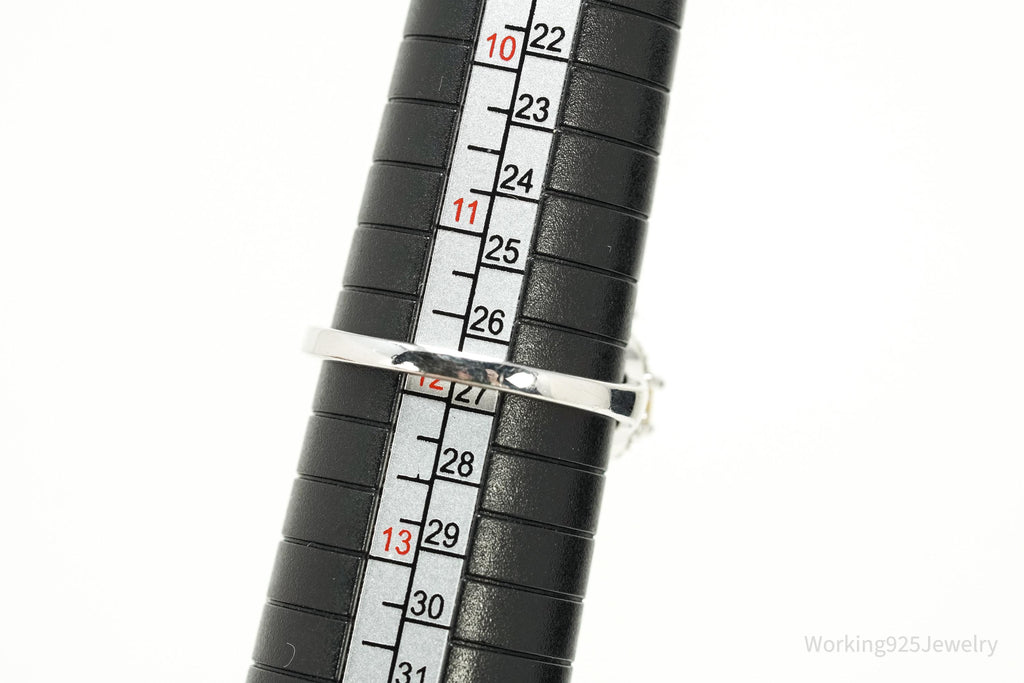 Opal & White Zircon Rhodium Sterling Silver Cocktail Ring Size 11.75