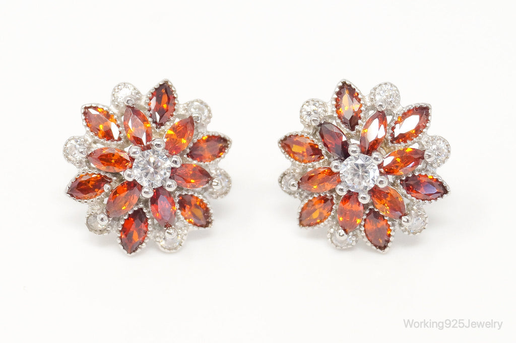 Orange Sapphire Cubic Zirconia Sterling Silver Stud Post Earrings