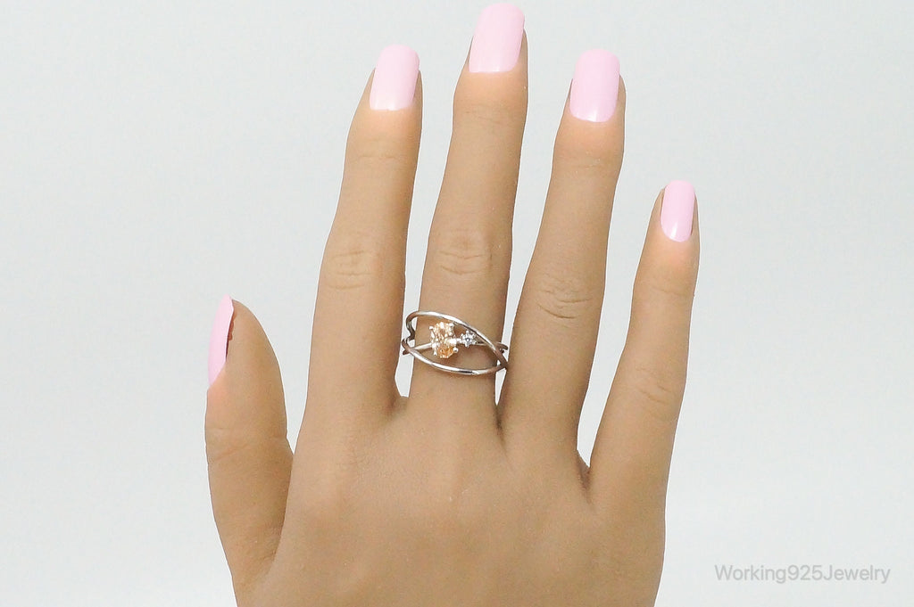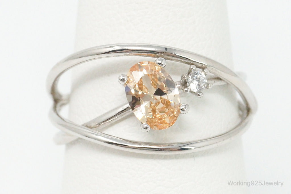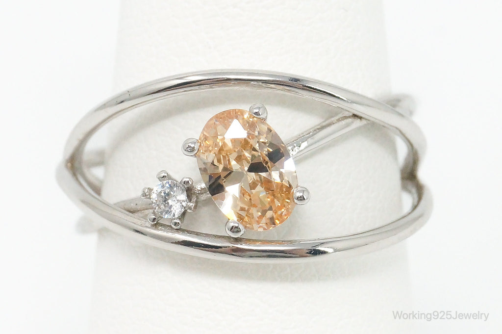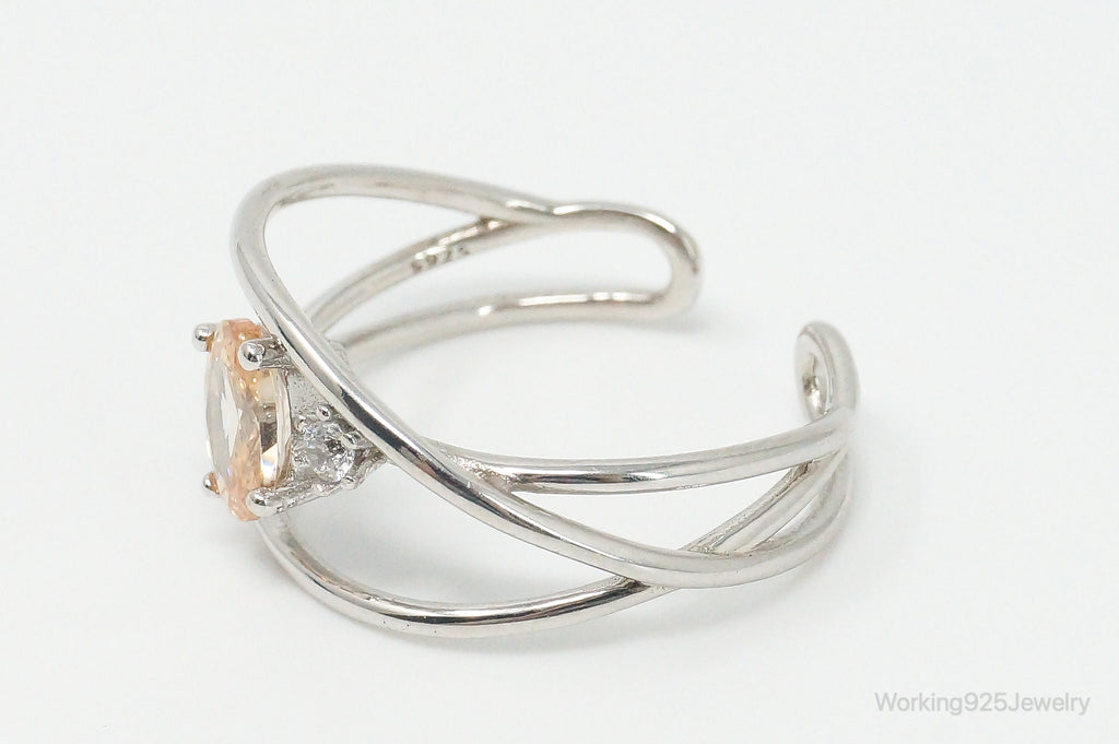 Orange Topaz Cubic Zirconia Sterling Silver Ring - Size 8.25 Adjustable