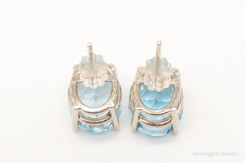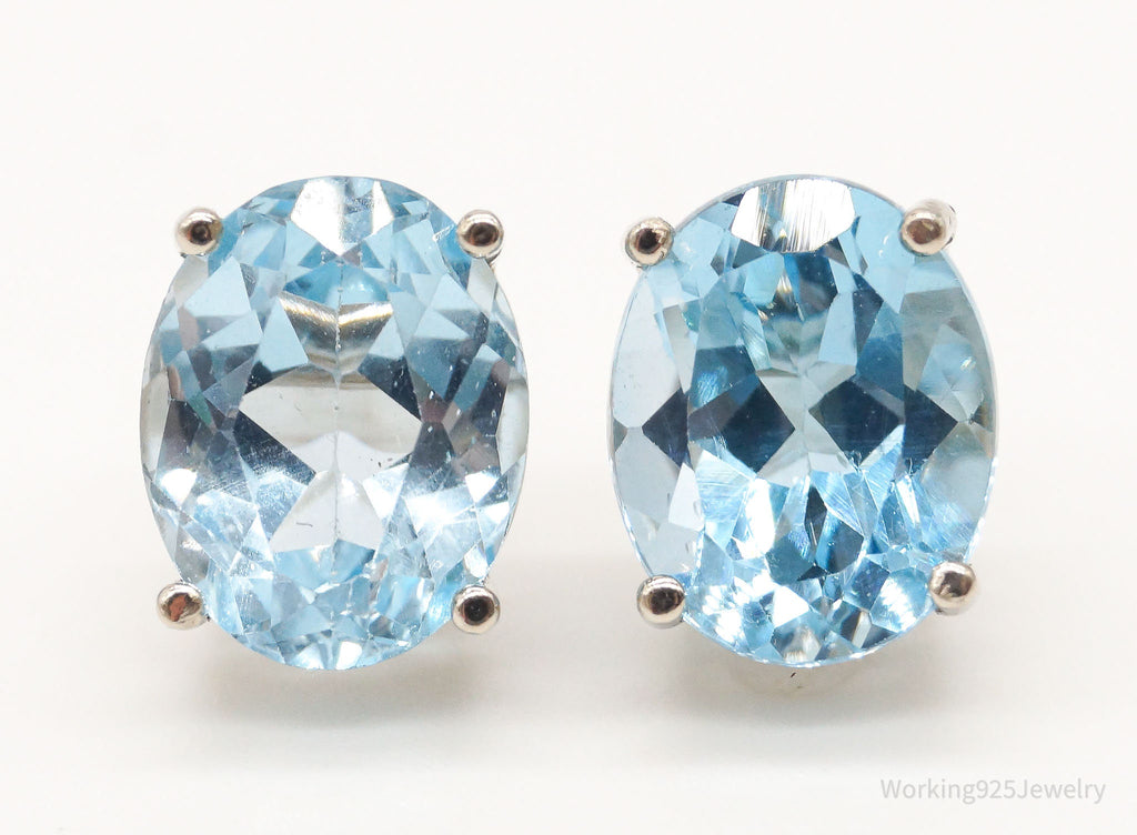Oval Blue Topaz 14K White Gold Stud Earrings