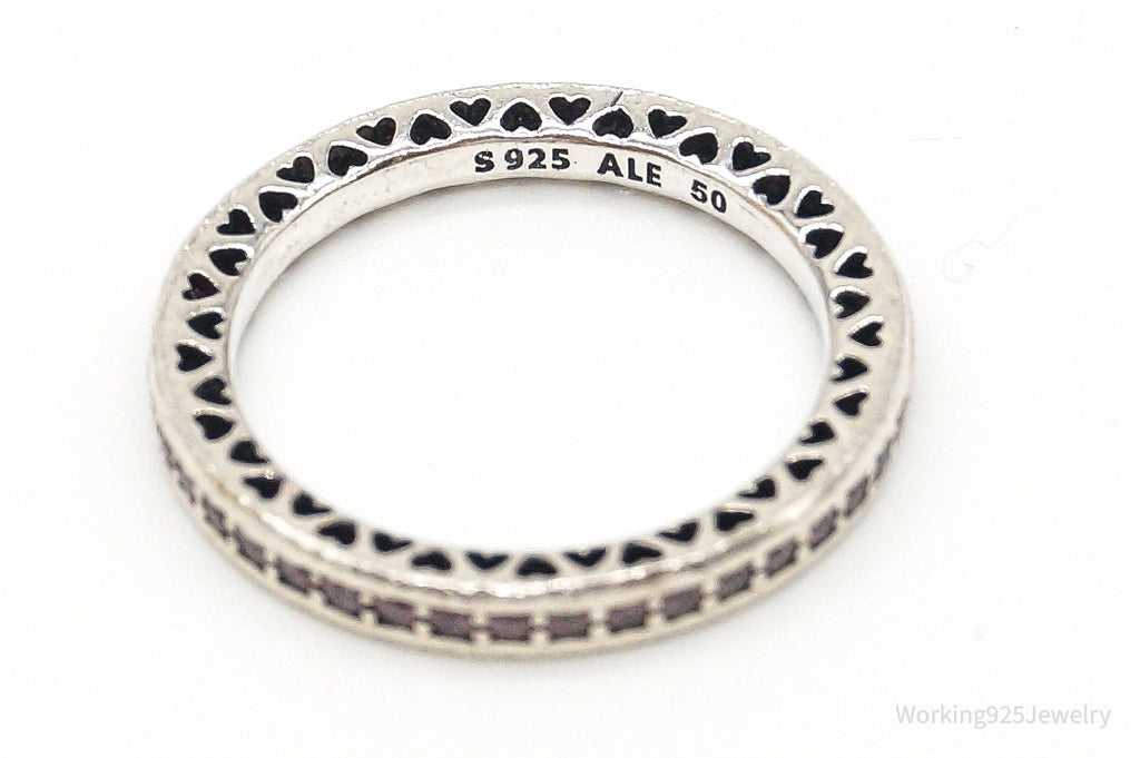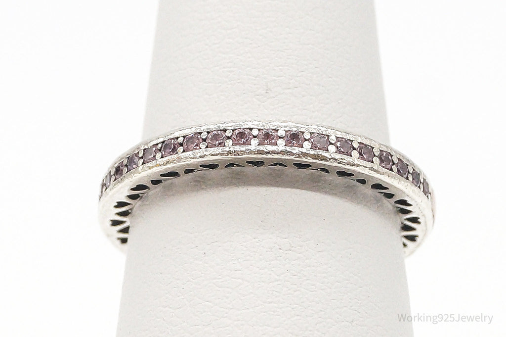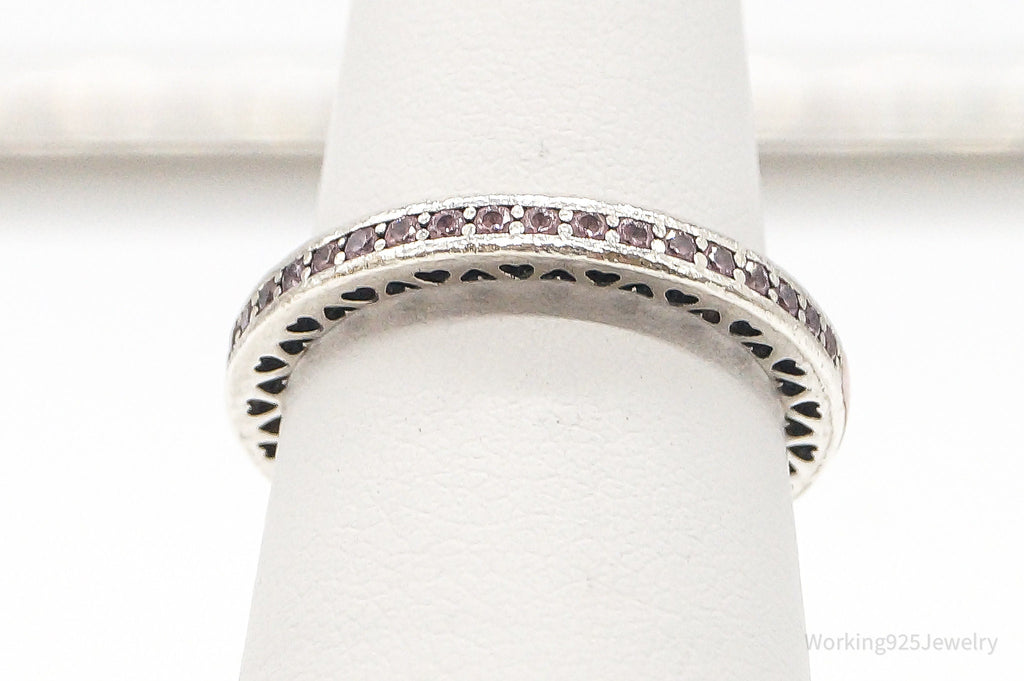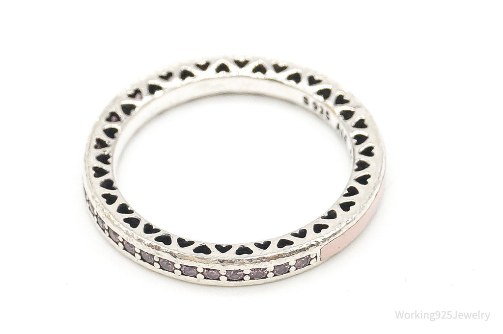 Pandora Pink Cubic Zirconia Hearts Enamel Sterling Silver Ring - Size 5.25