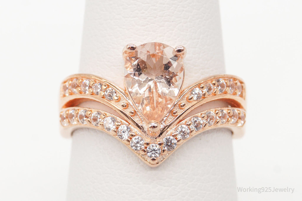 Pink Morganite White Zircon 18K Rose Gold Over Sterling Silver Ring - Size 6.75