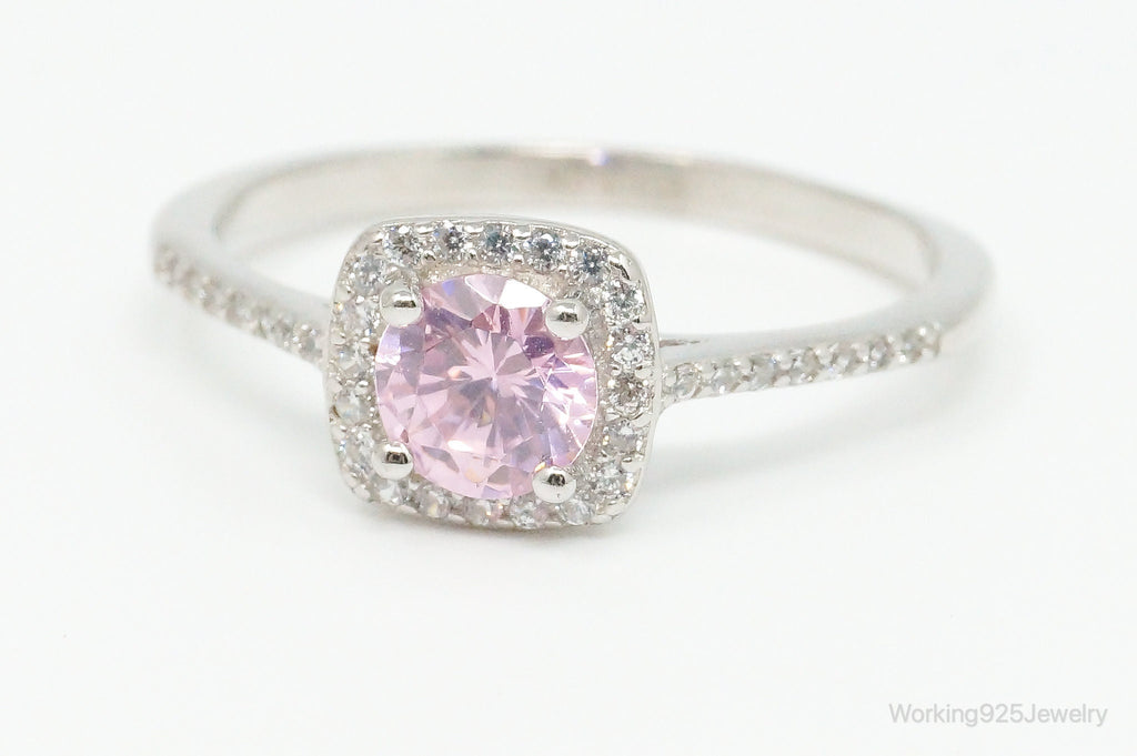 Pink Topaz Cubic Zirconia Sterling Silver Ring - Size 10.75