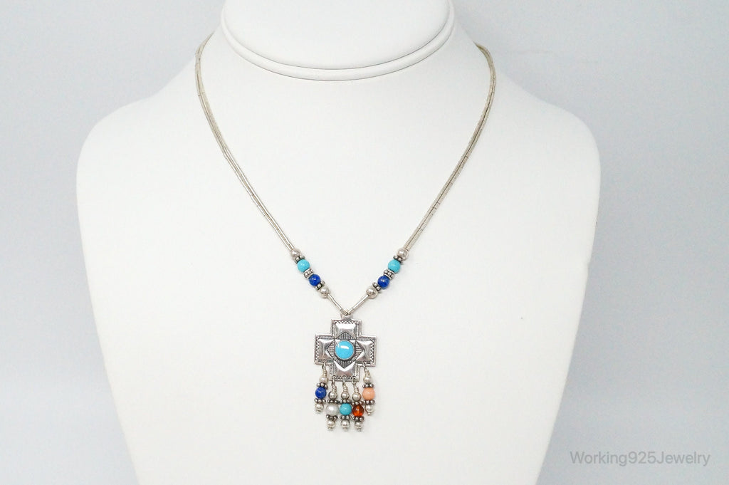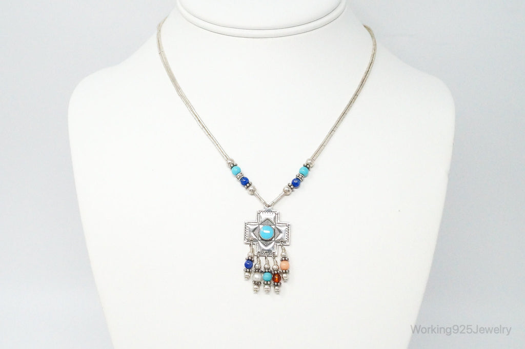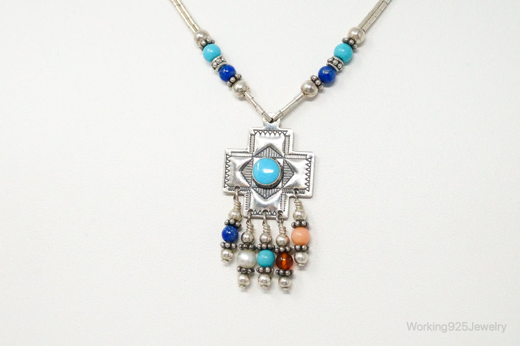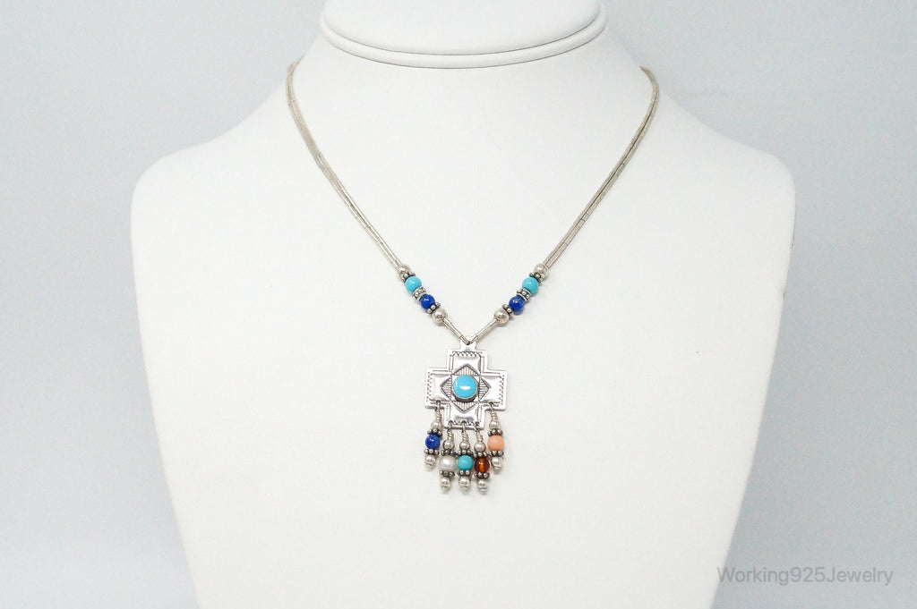 QT Turquoise Pendant On Carolyn Pollack Bead Sterling Silver Chain Necklace
