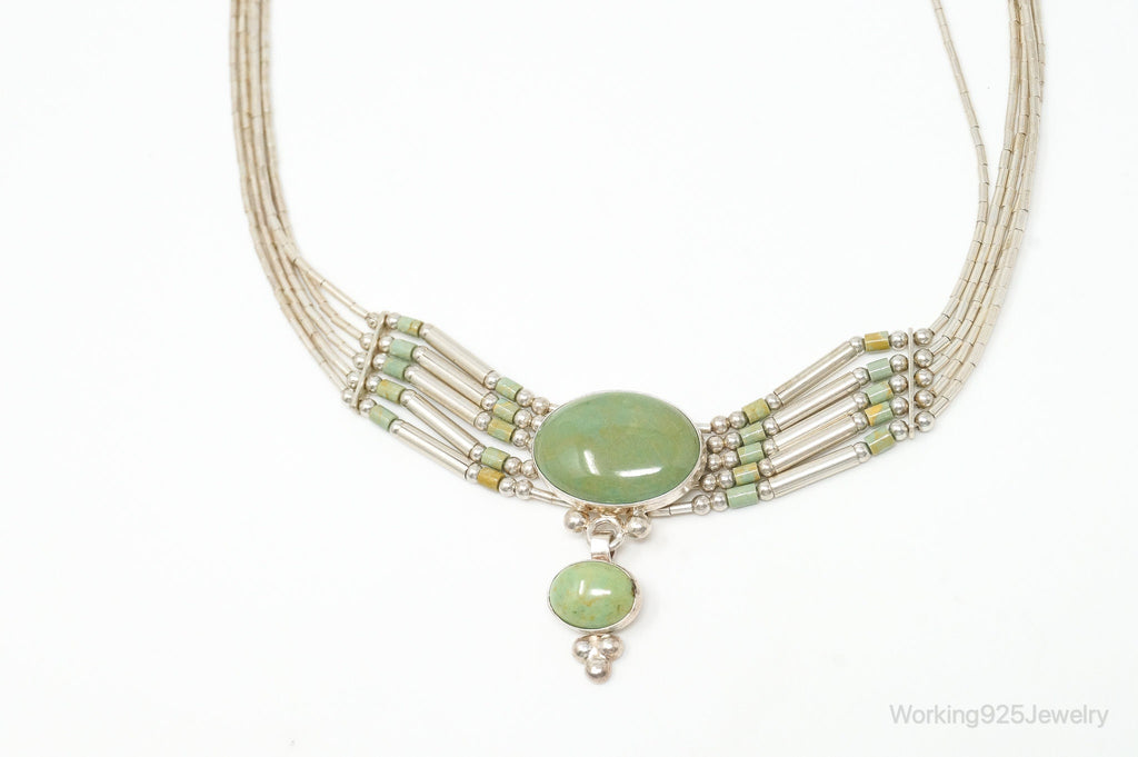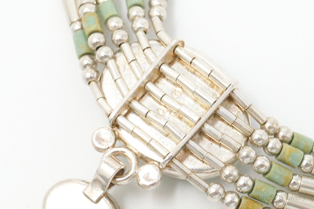 QT Turquoise Pendant On Carolyn Pollack Bead Sterling Silver Necklace Chain