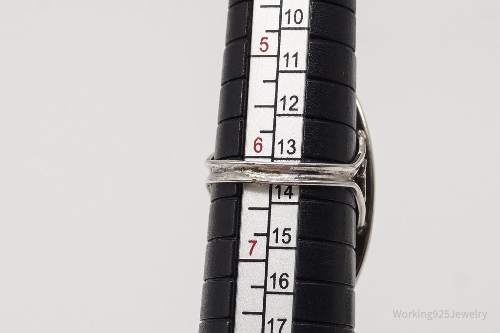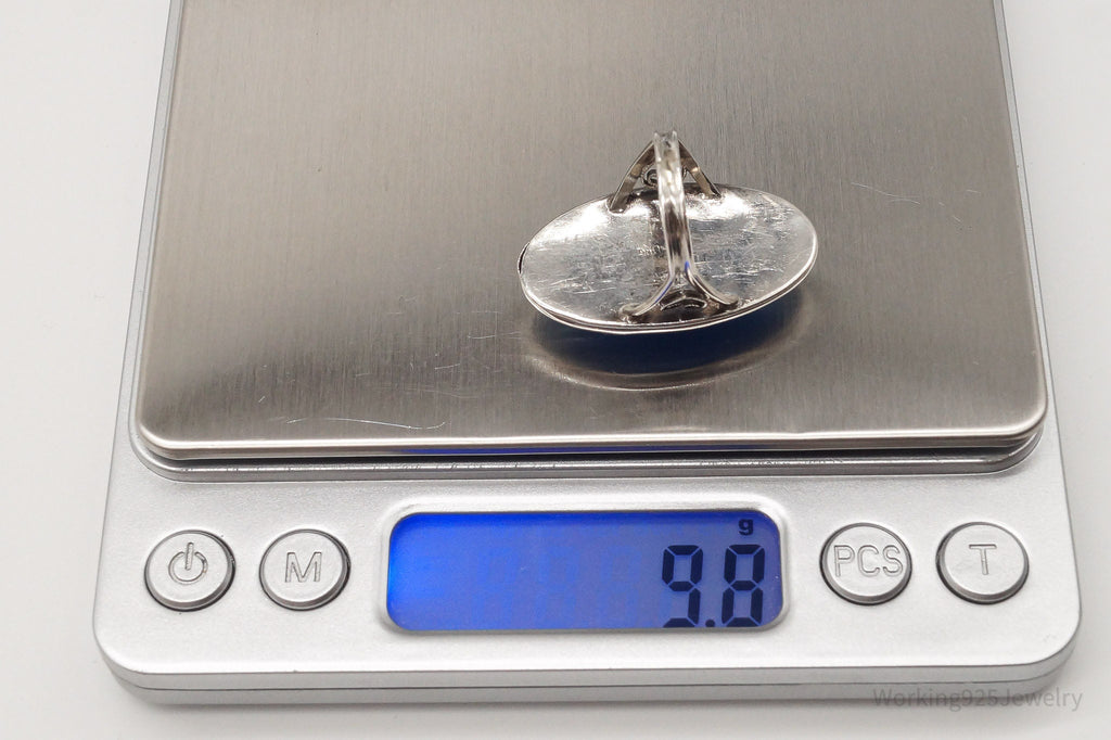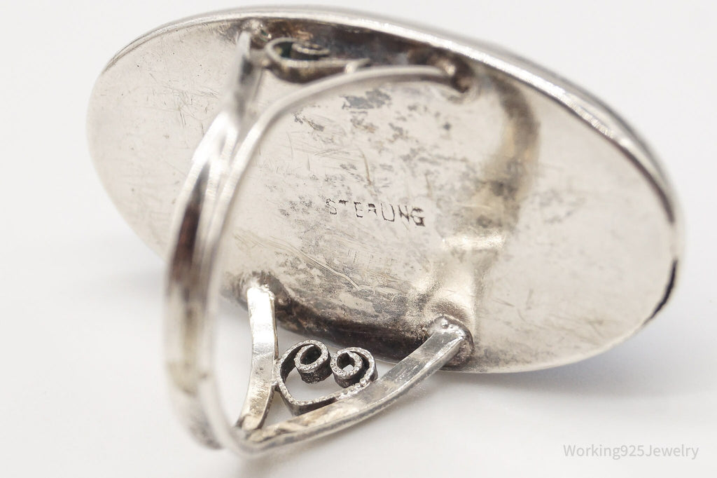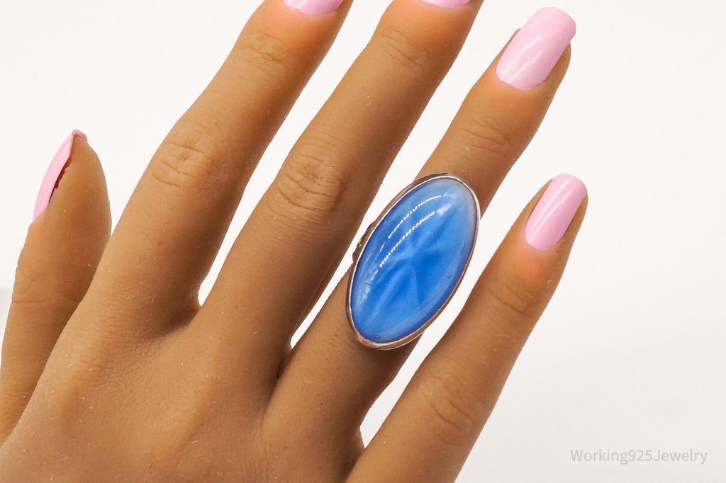 Rare Antique Large Blue Glass Star Sapphire Sterling Silver Ring - Size 6.25