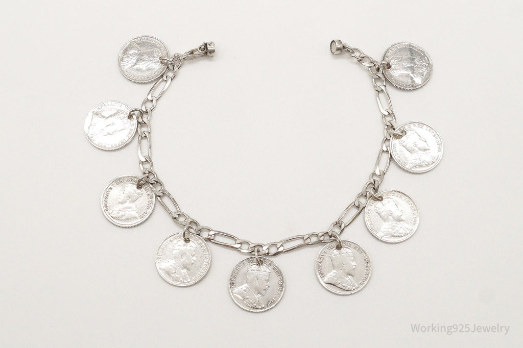 Rare Edward VII Coins Sterling Silver Chain Magnet Clasp Bracelet