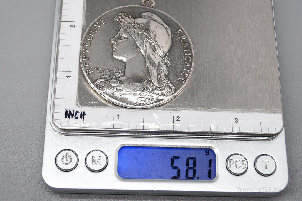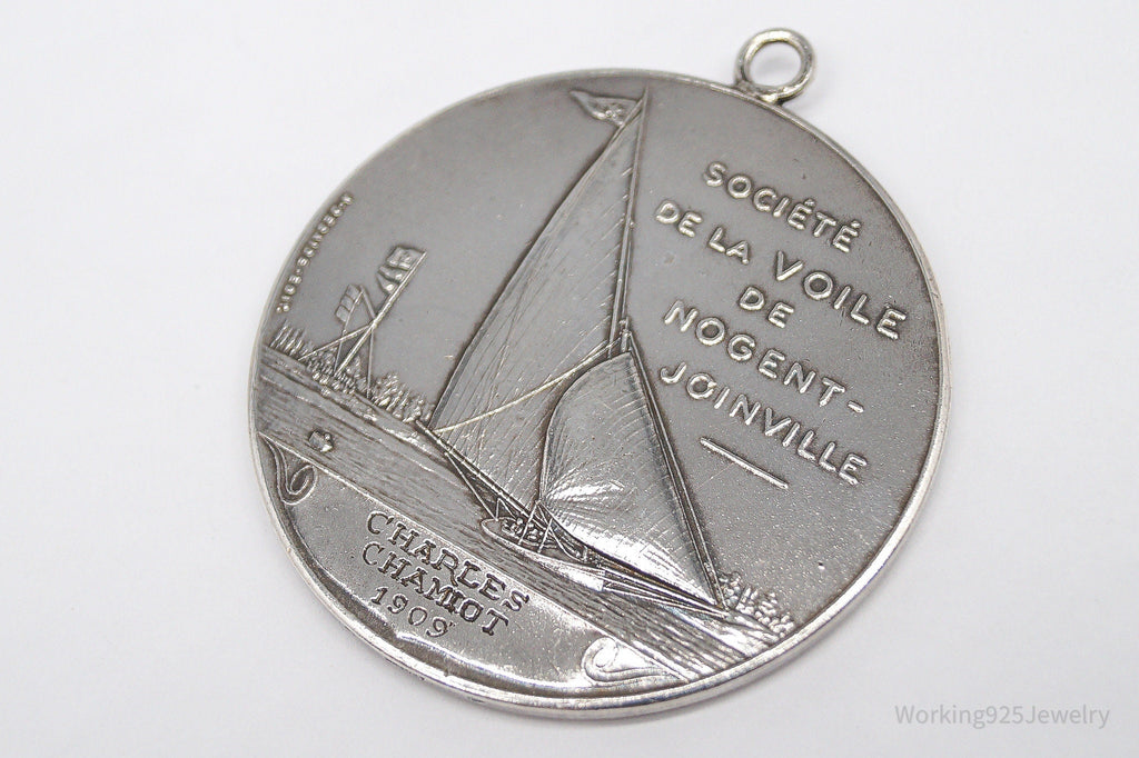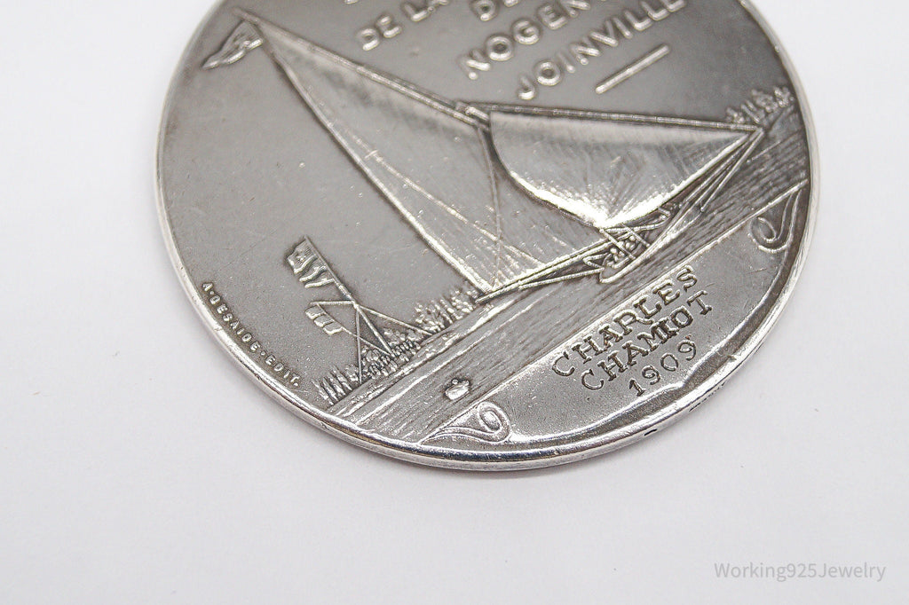 RARE Large Antique 1909 Nogent Joinville Sailing Society France Silver Medal