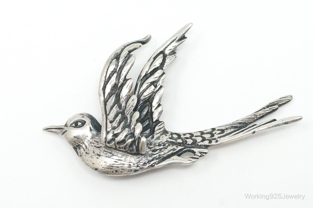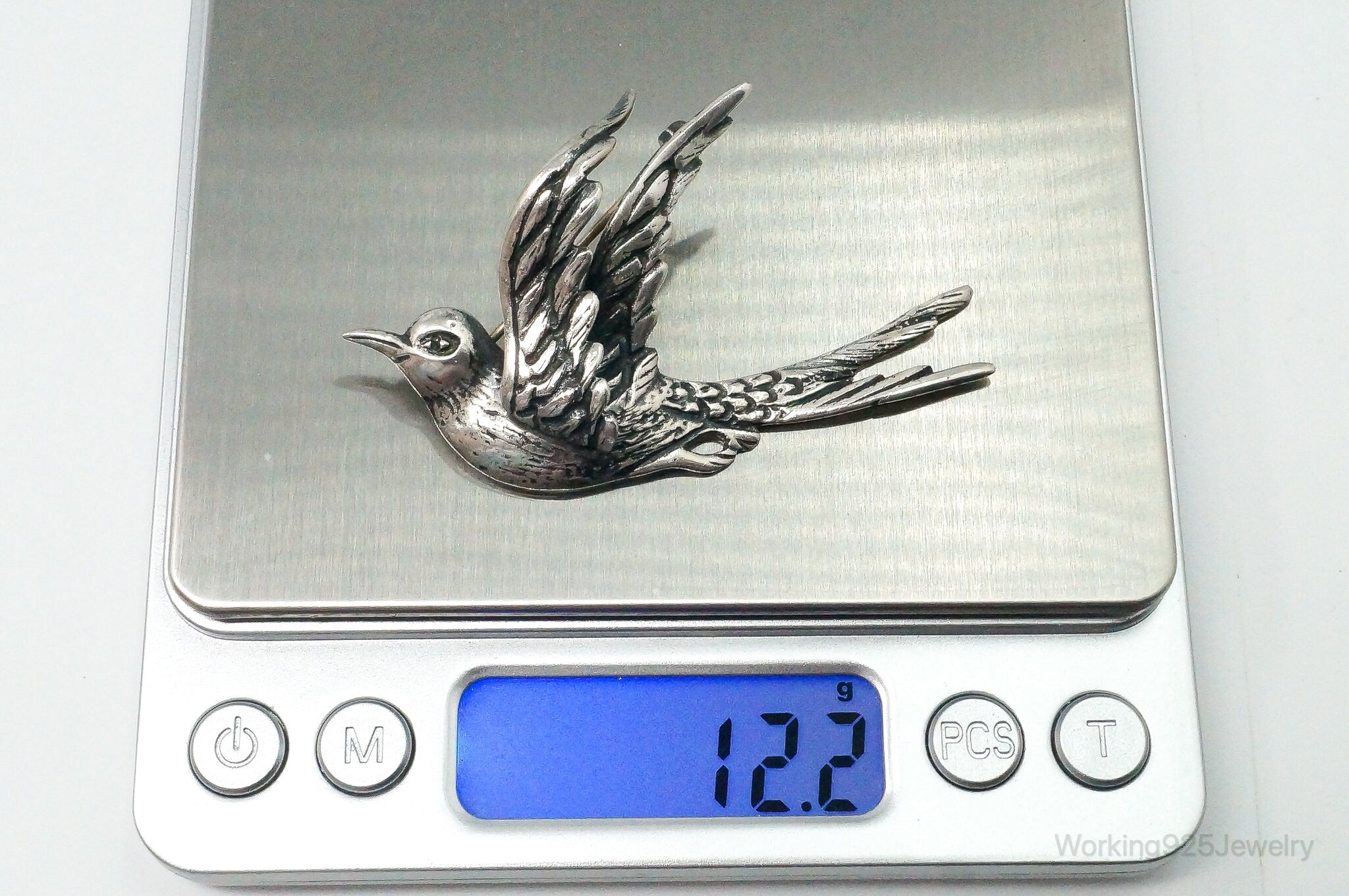 Rare Large Vintage Designer DUNEZ Bird Sterling Silver Brooch Pin