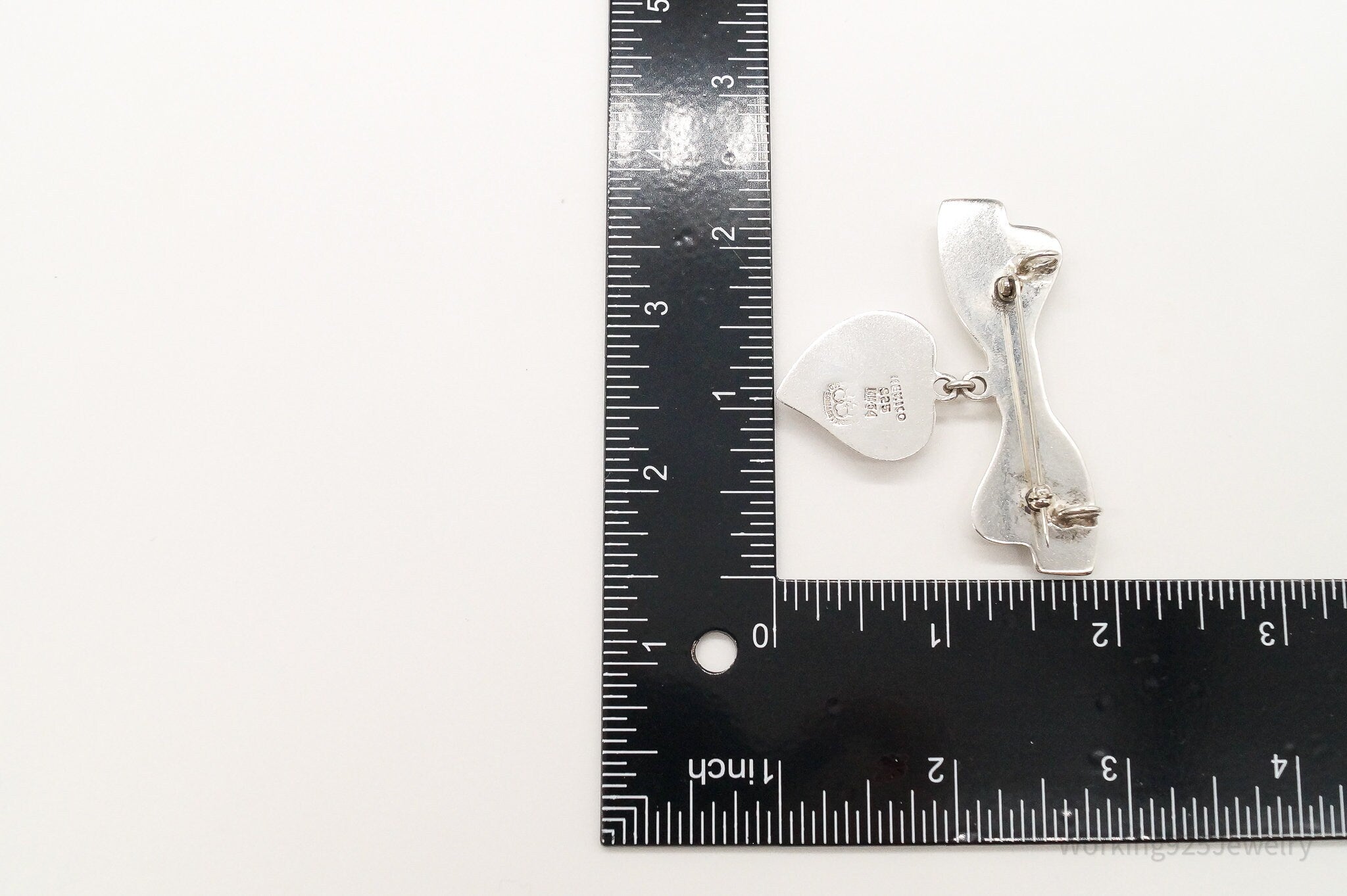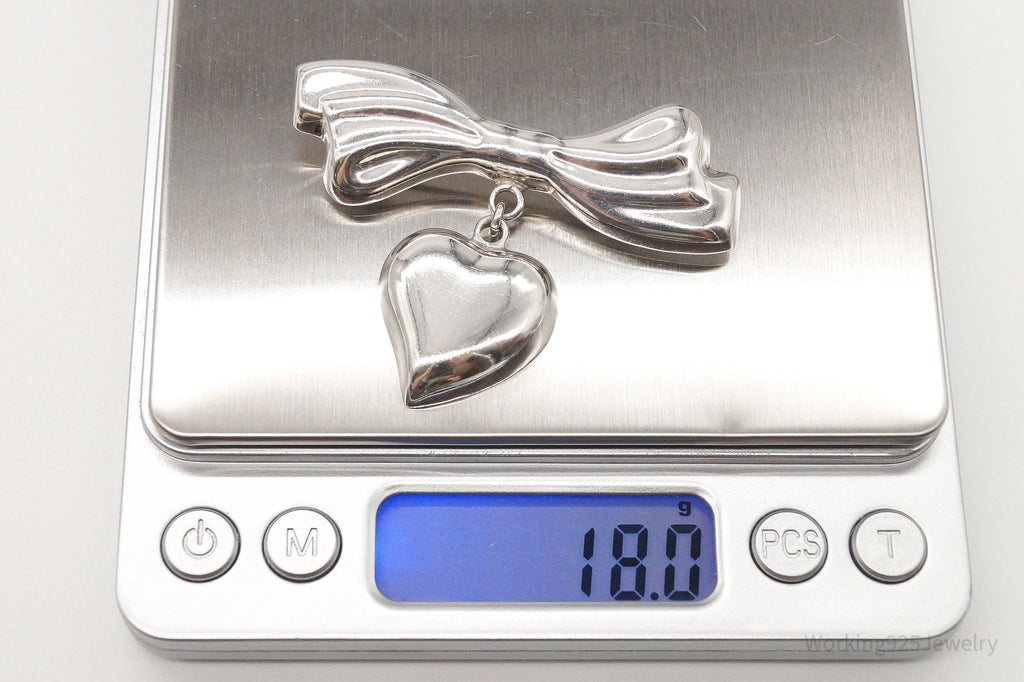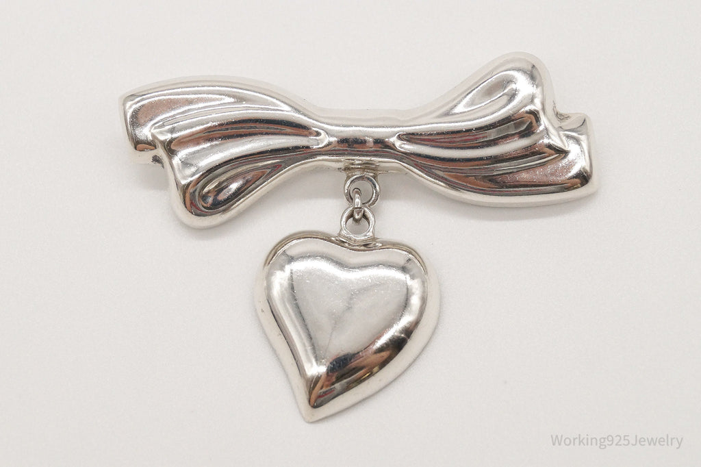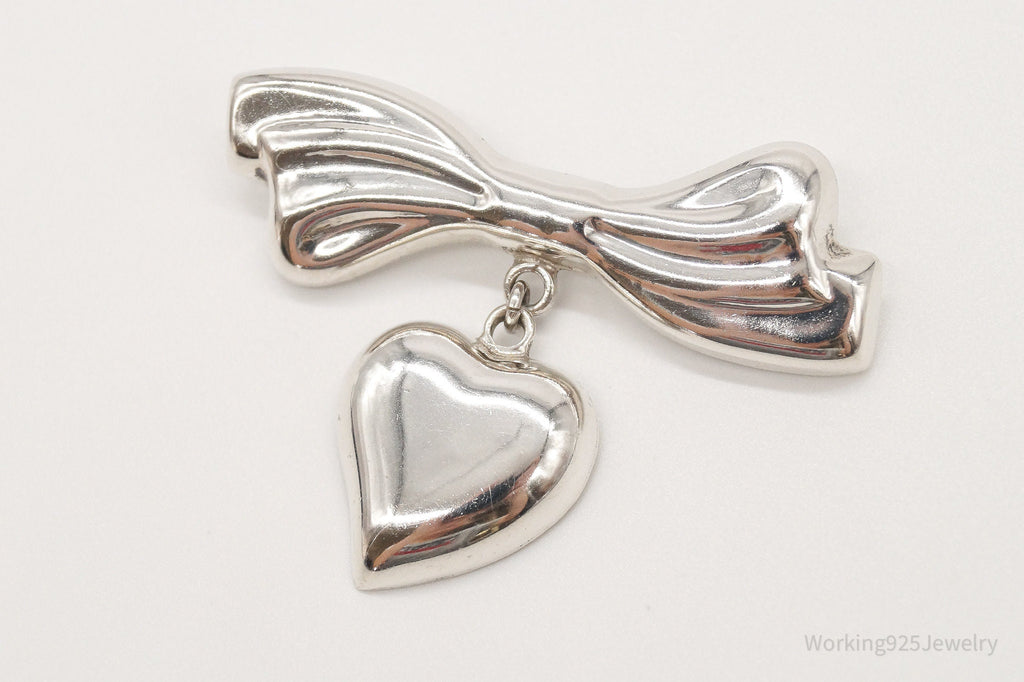 Rare VTG Mexico Modernist Los Ballesteros Heart & Bow Sterling Silver Brooch/Pin