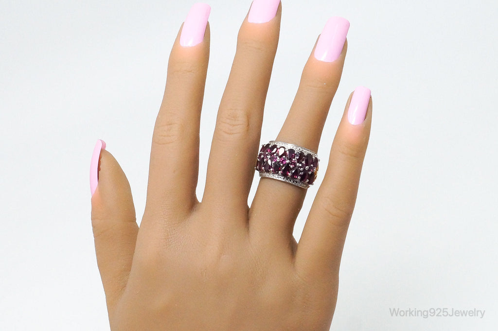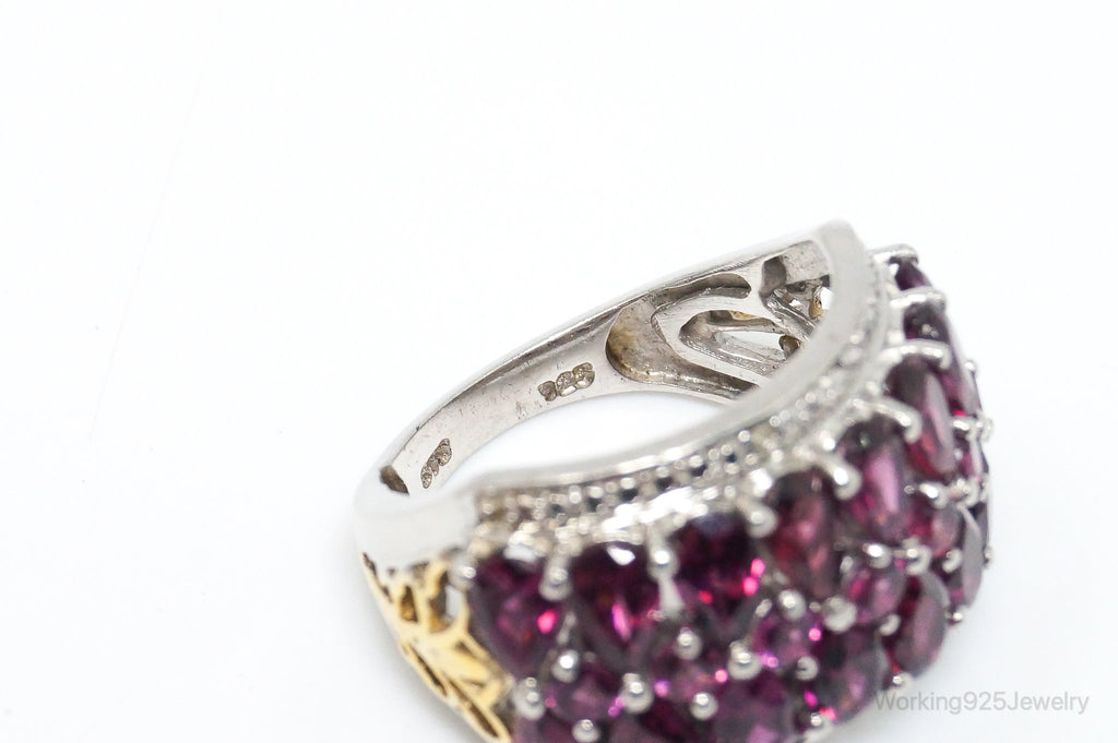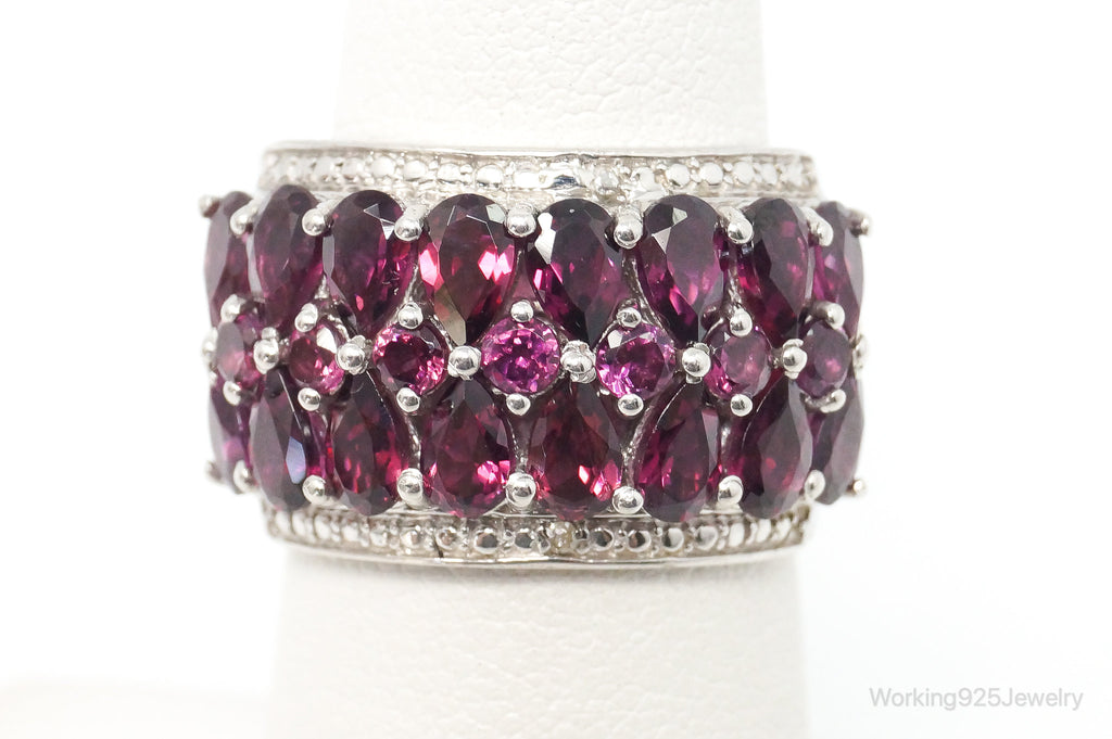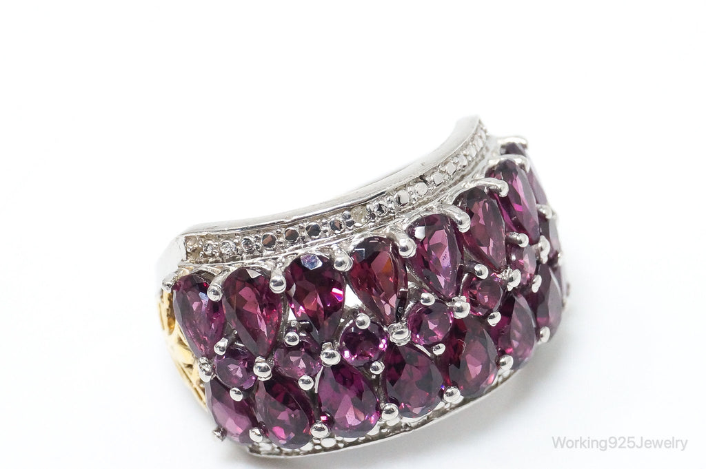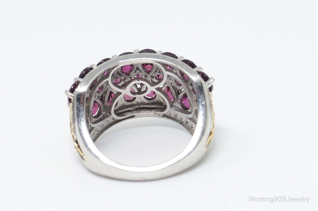 Rhodolite Garnet Pink Sapphire Diamond Gold Vermeil Sterling Silver Ring SZ 6