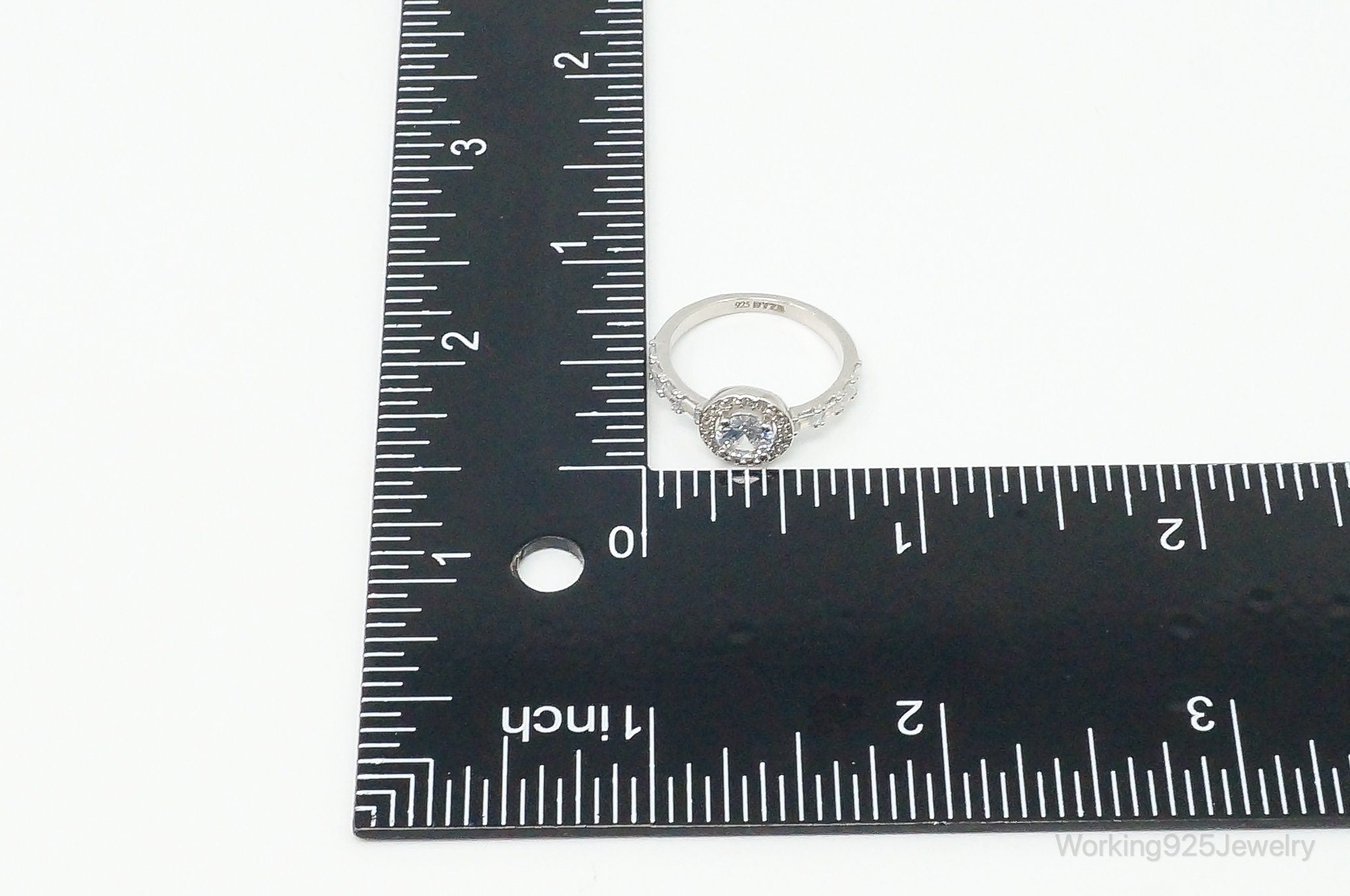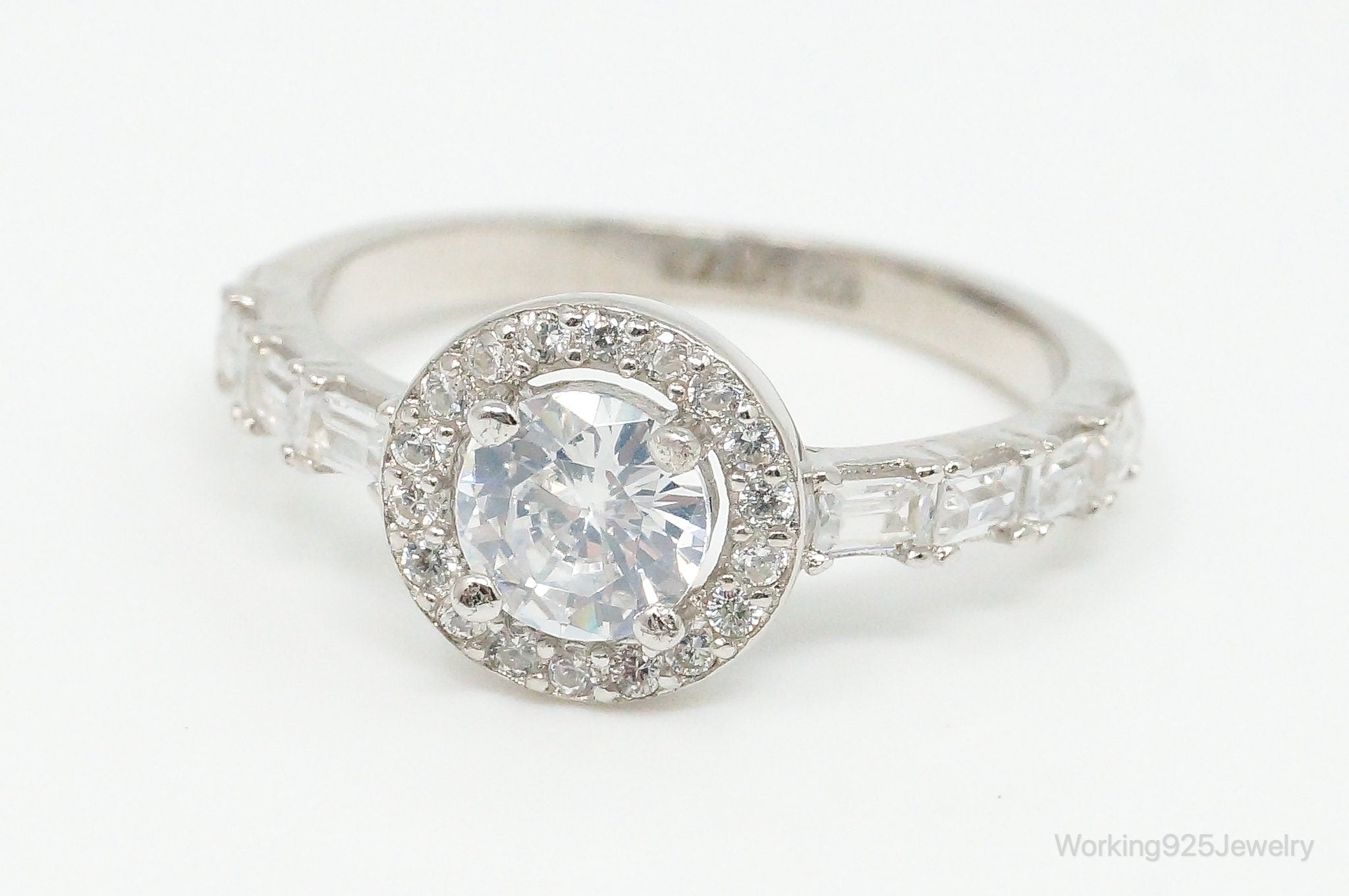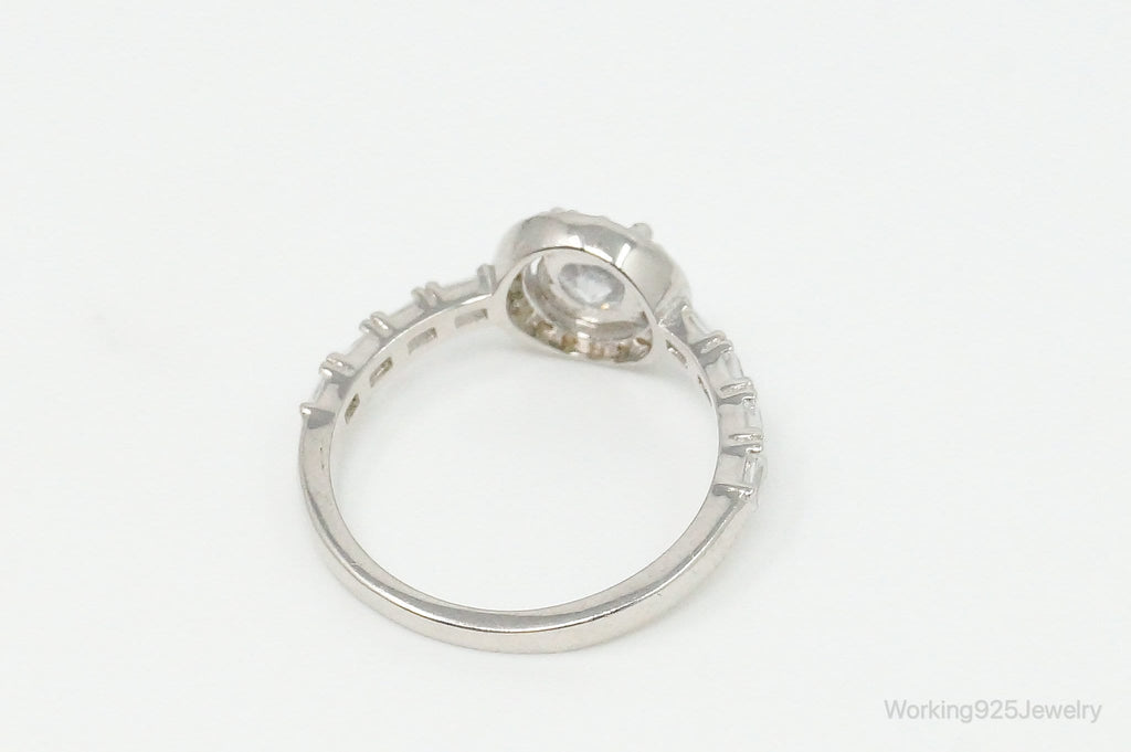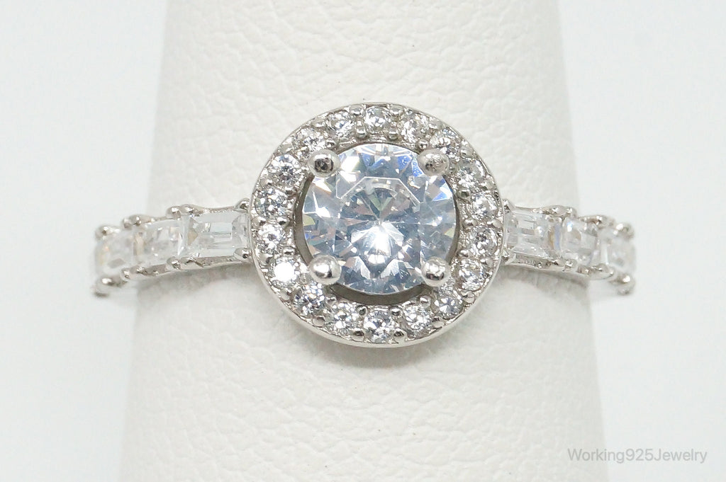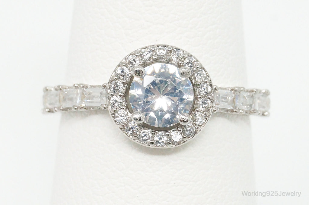 Round Halo Cubic Zirconia Sterling Silver Ring - Size 6