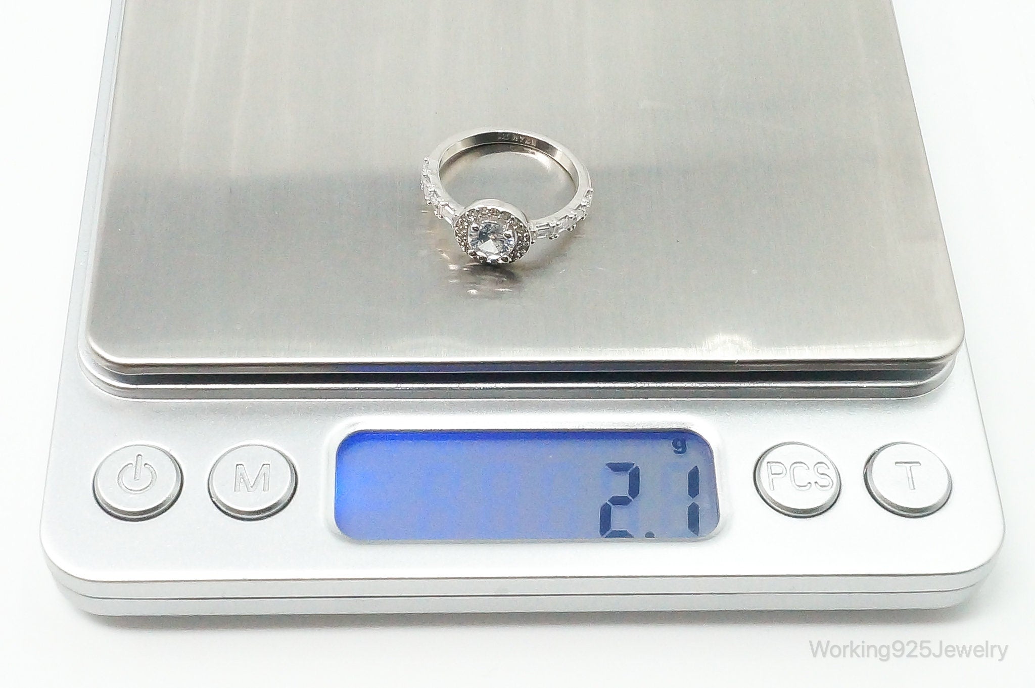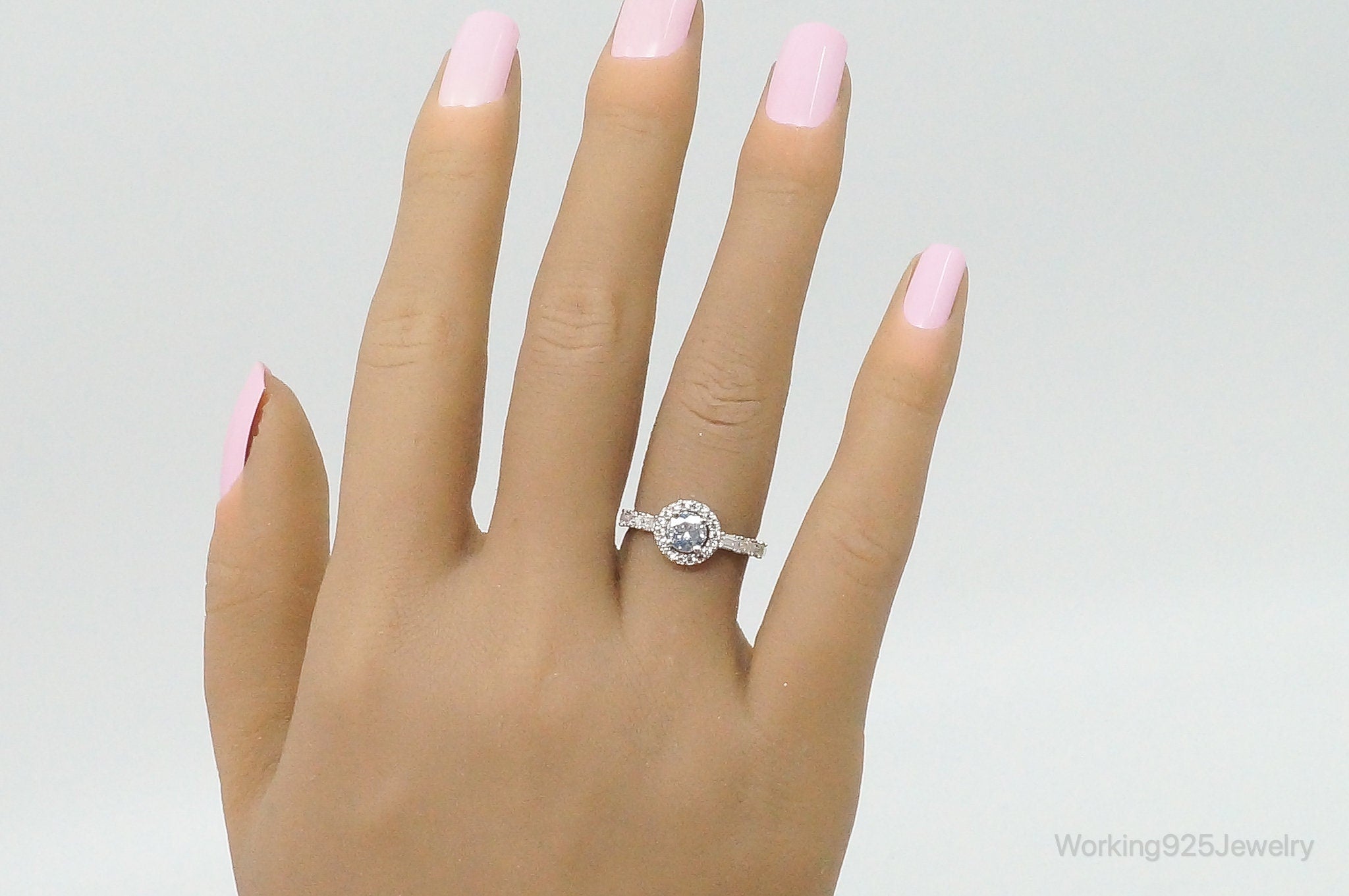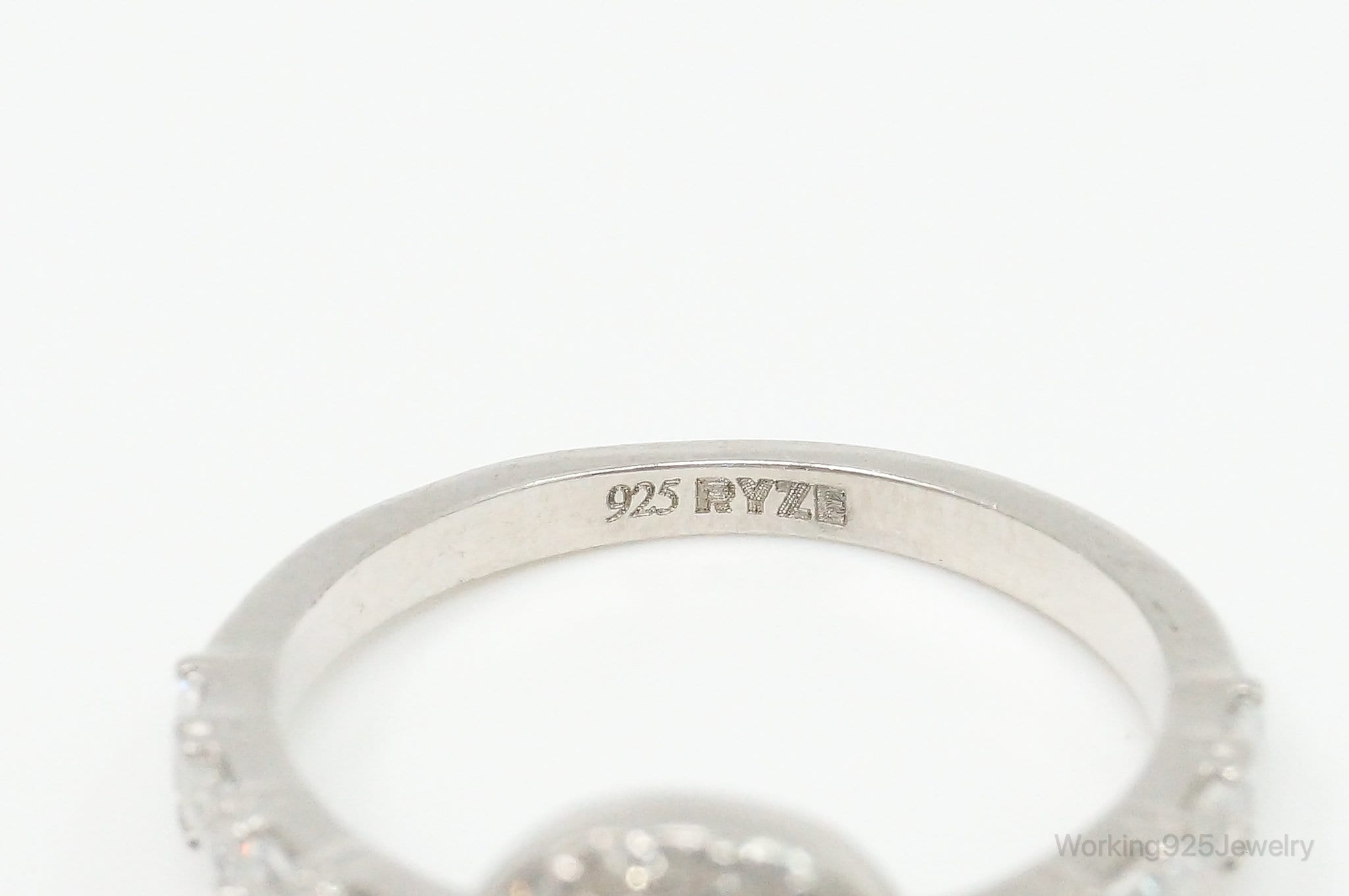 Round Halo Cubic Zirconia Sterling Silver Ring - Size 6