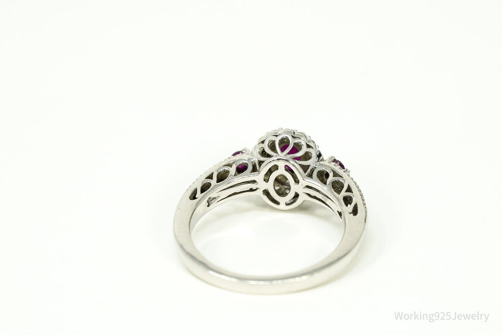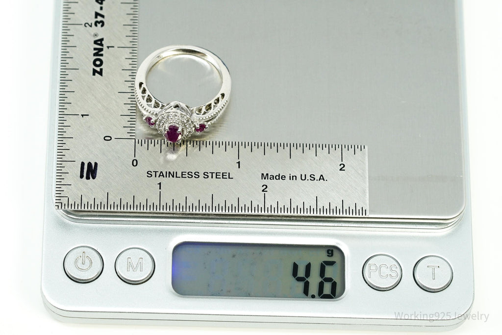 Ruby & White Zircon Sterling Silver Ring - Size 8.75