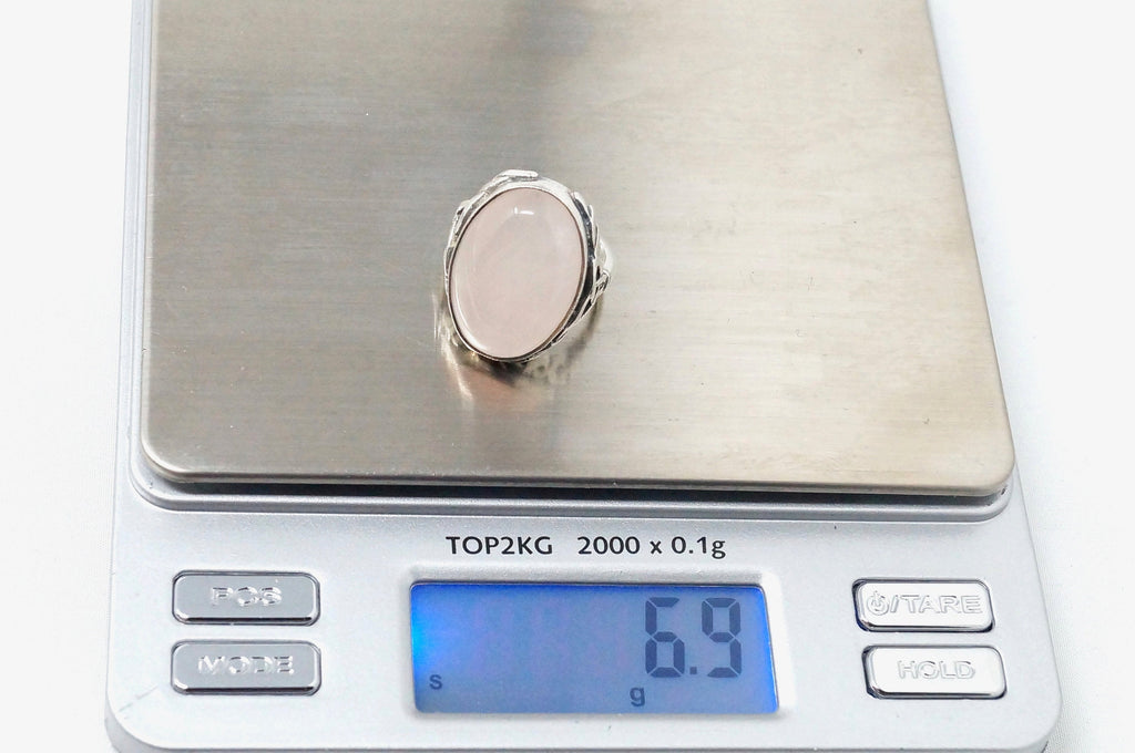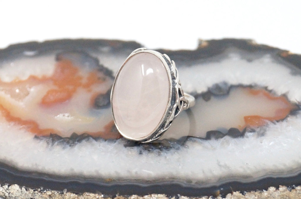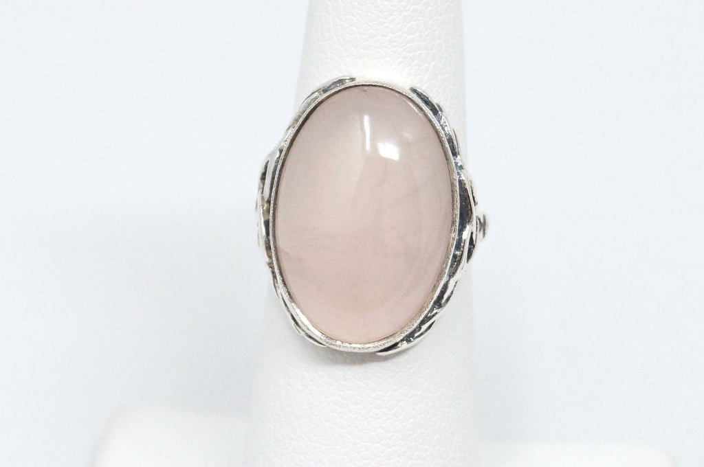 Stunning Antique Large Rose Quartz Sterling Silver Statement Ring - Size 5