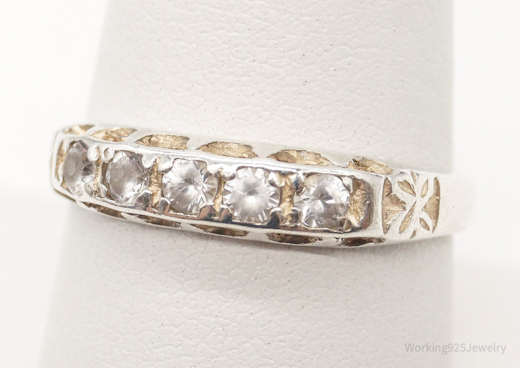 Victorian Antique Rhinestone Silver Ring - Size 8.25