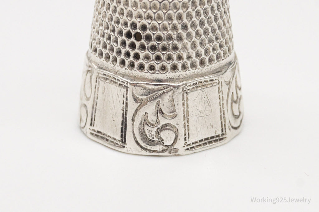 *This thimble is slightly out-of-round and displays a vertical break on one side. Please see the last photo for details.*