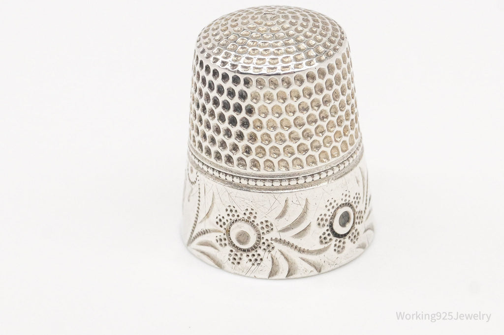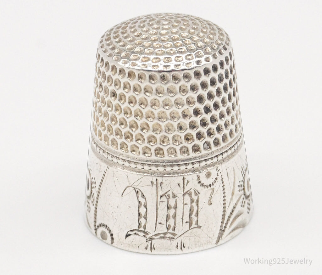 Victorian Antique Waite Thresher "W" Flowers Sterling Silver Thimble
