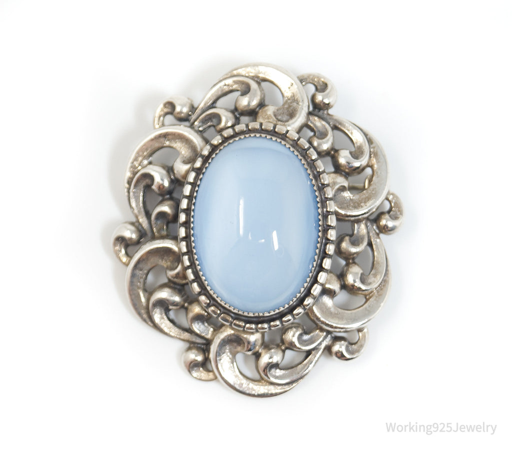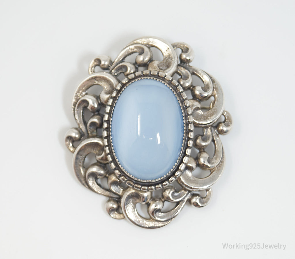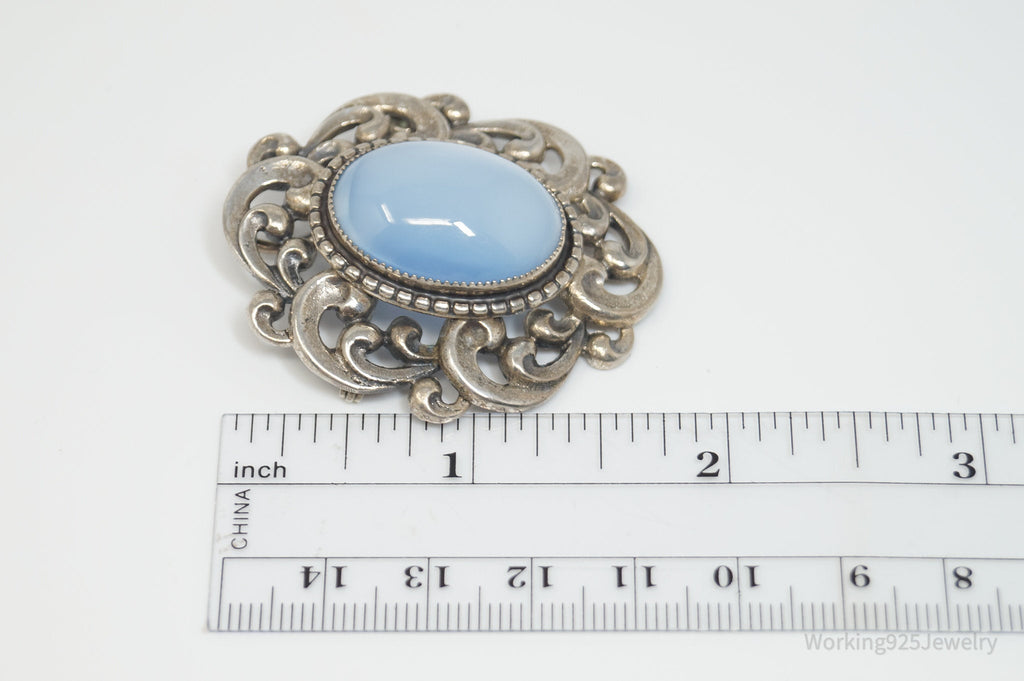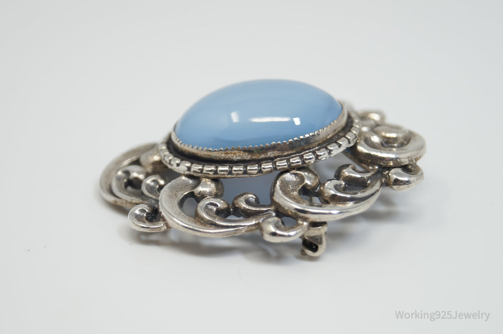 Vintage 1950s Danecraft Blue Opalite Stone Sterling Silver Pendant Pin Brooch