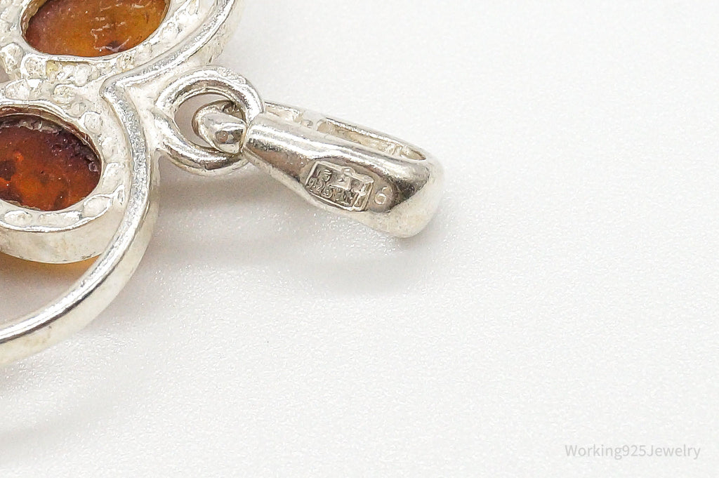 Vintage Amber Heart Modernist Sterling Silver Pendant