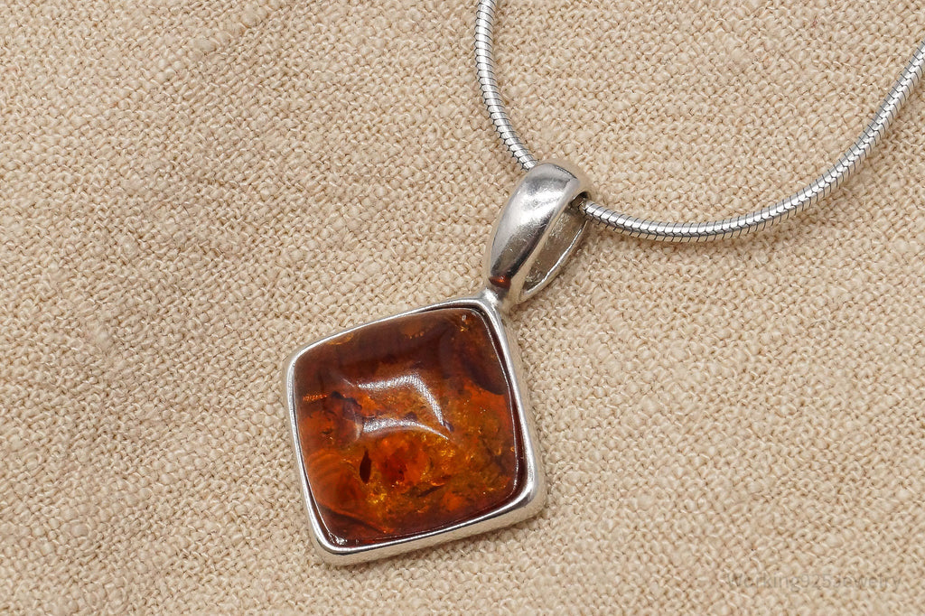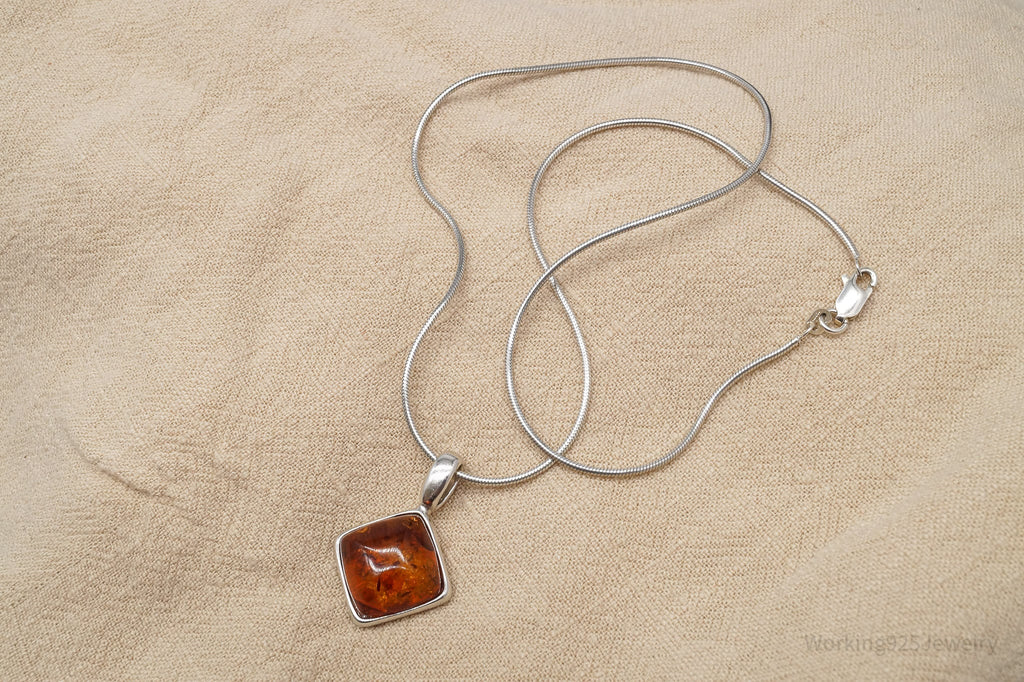 Vintage Amber Sterling Silver Chain Necklace - 16"