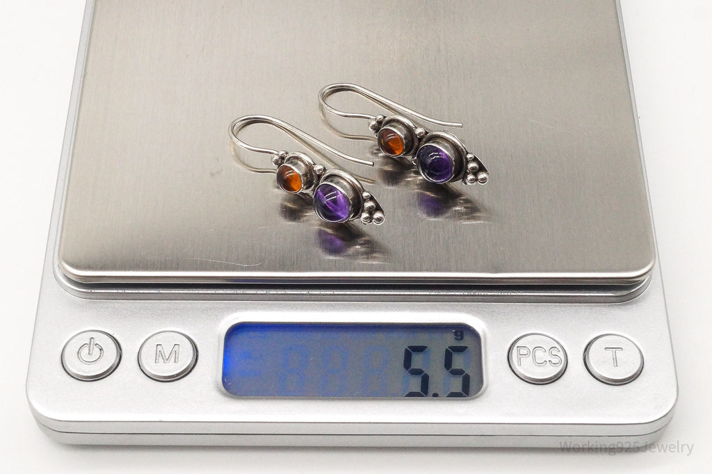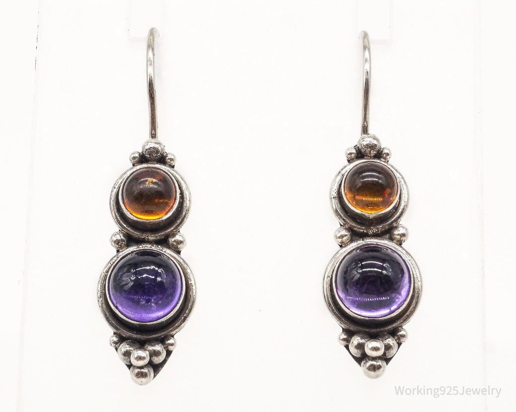 Vintage Amethyst Amber Sterling Silver Earrings