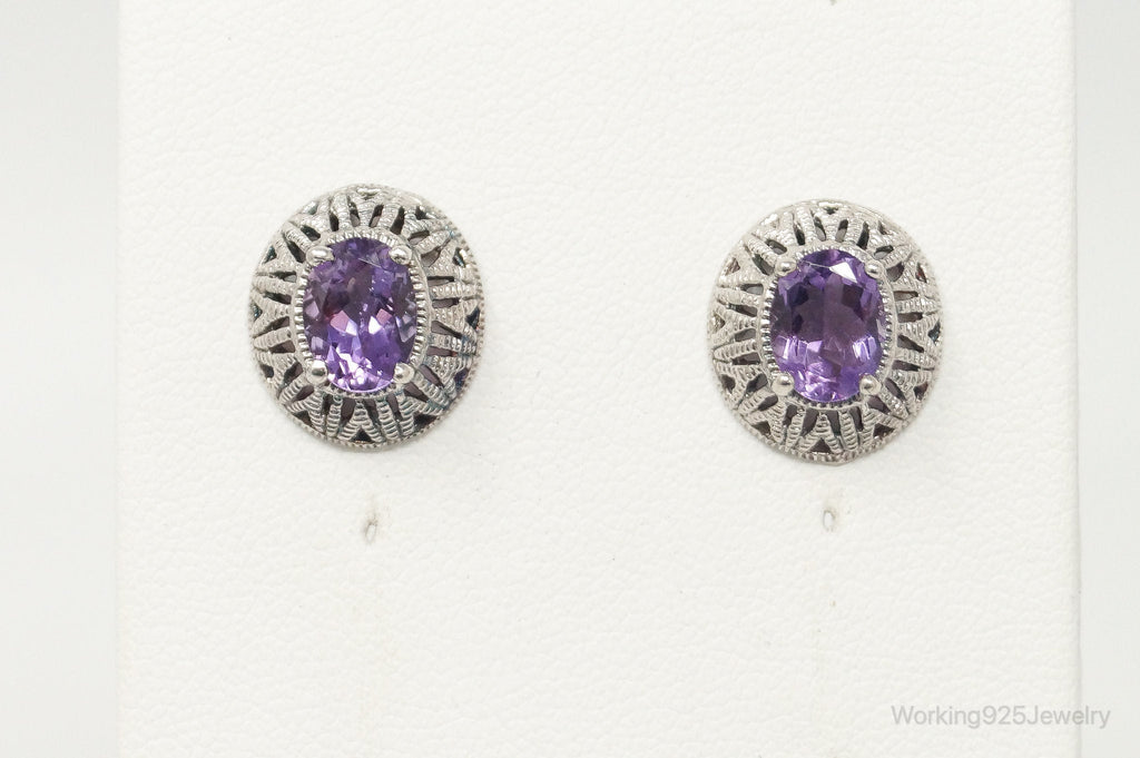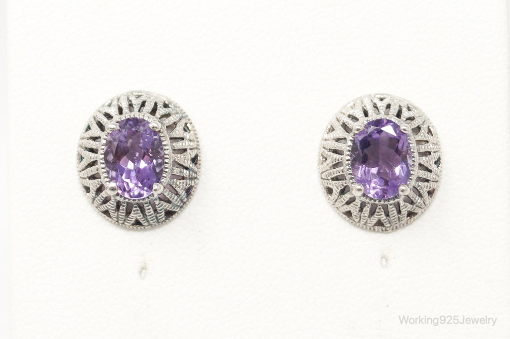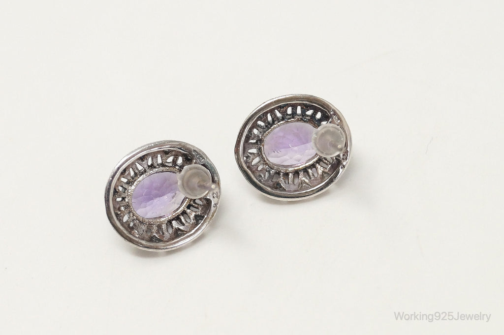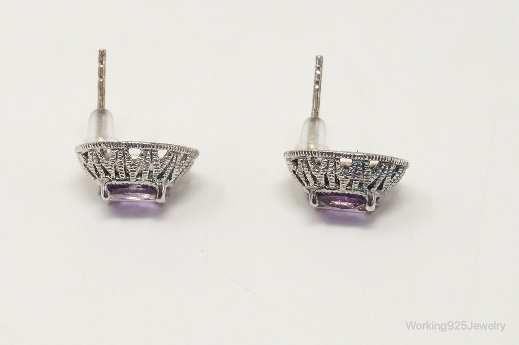 Vintage Amethyst Art Deco Sterling Silver Earrings