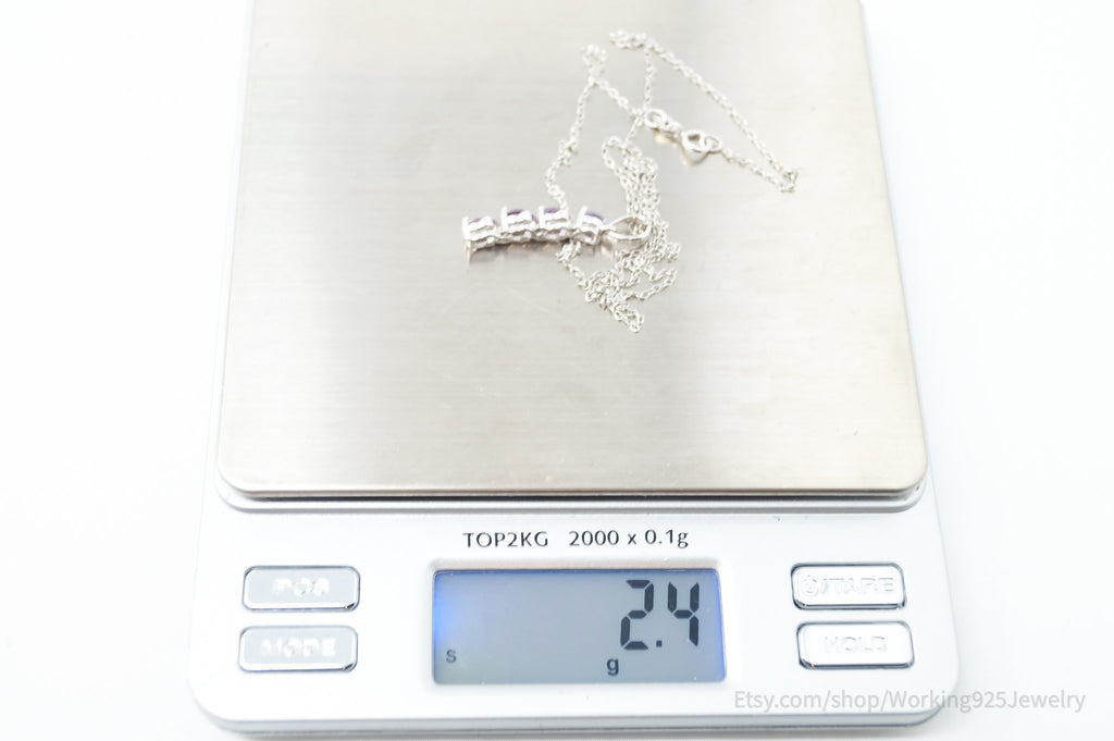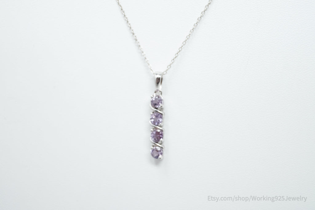 Vintage Amethyst Art Deco Sterling Silver Long Chain Necklace