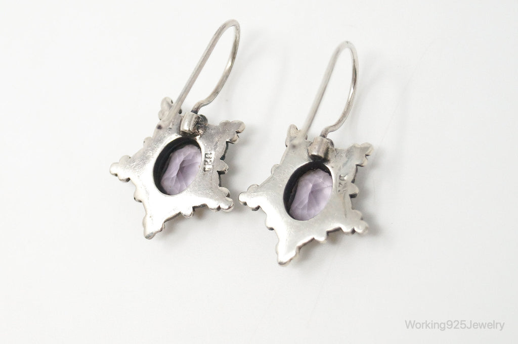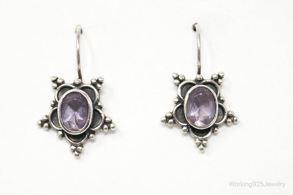 Vintage Amethyst Bali Design Sterling Silver Earrings