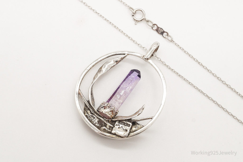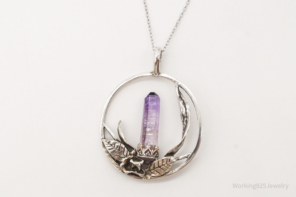 Vintage Amethyst Crystal Sterling Silver Necklace