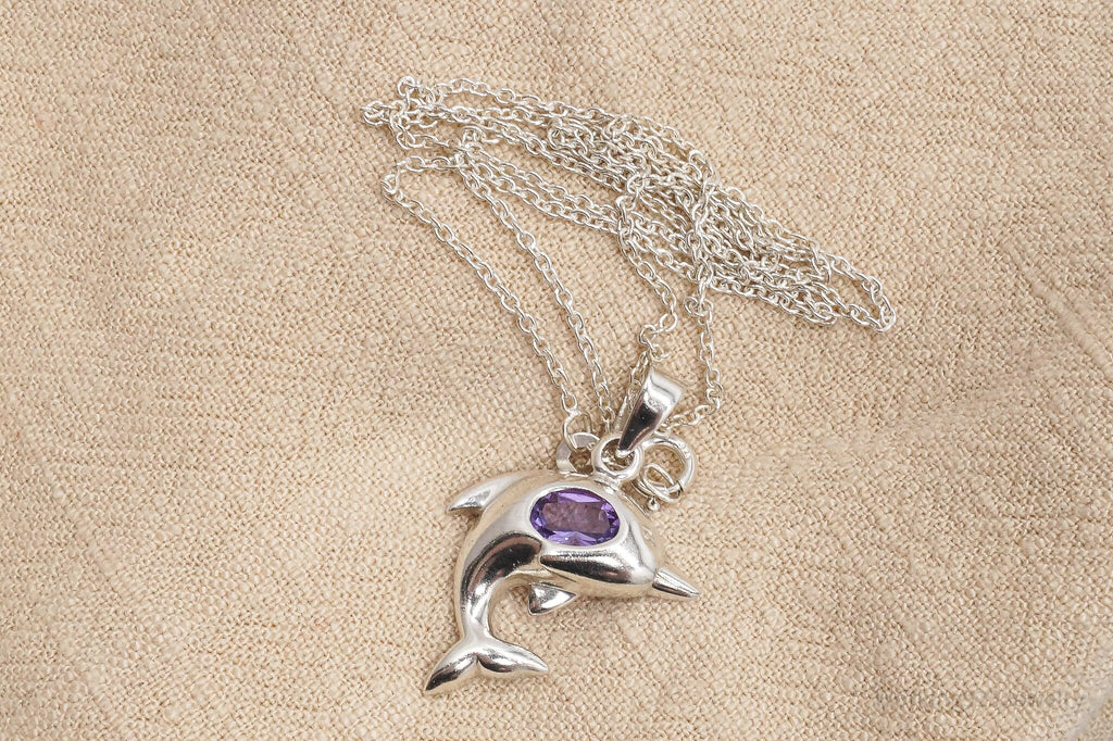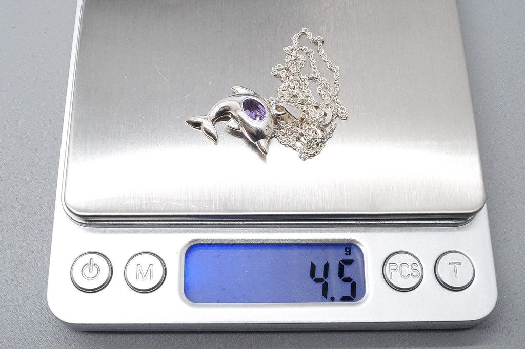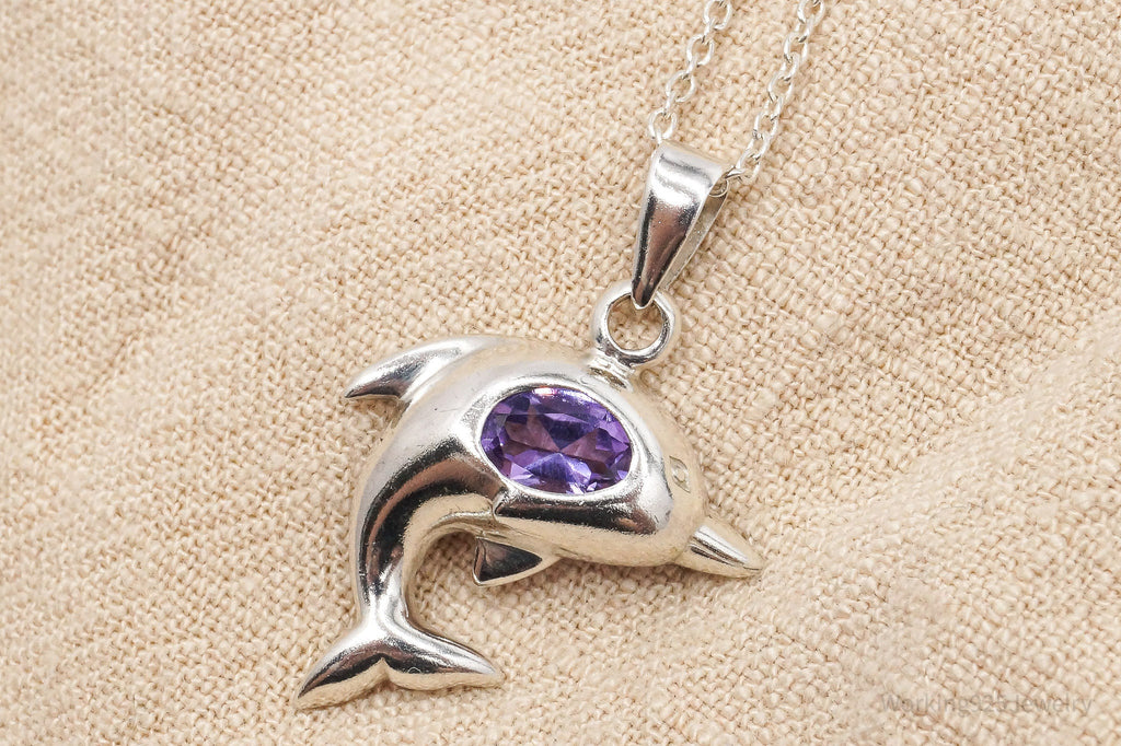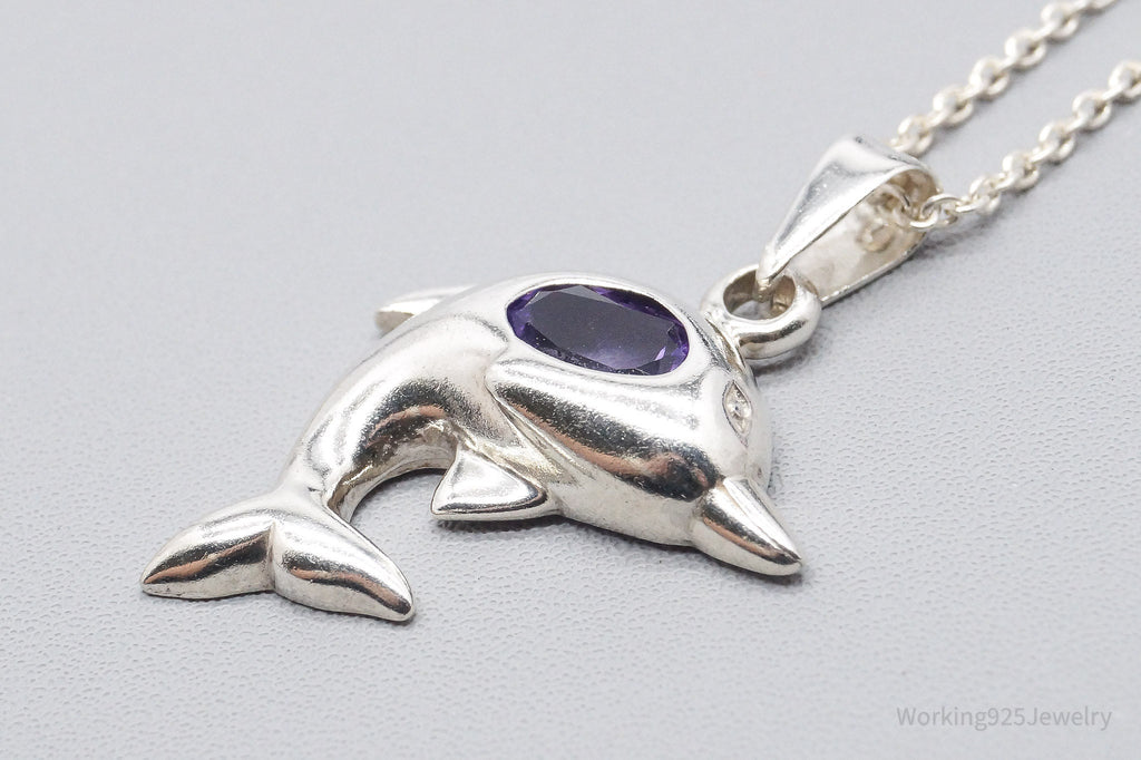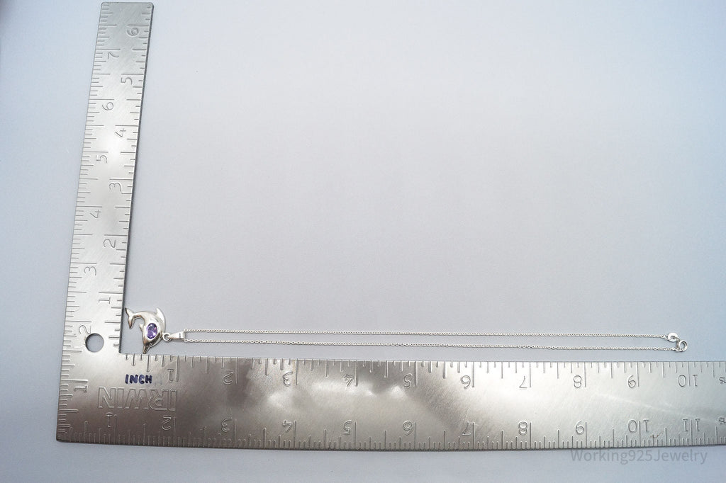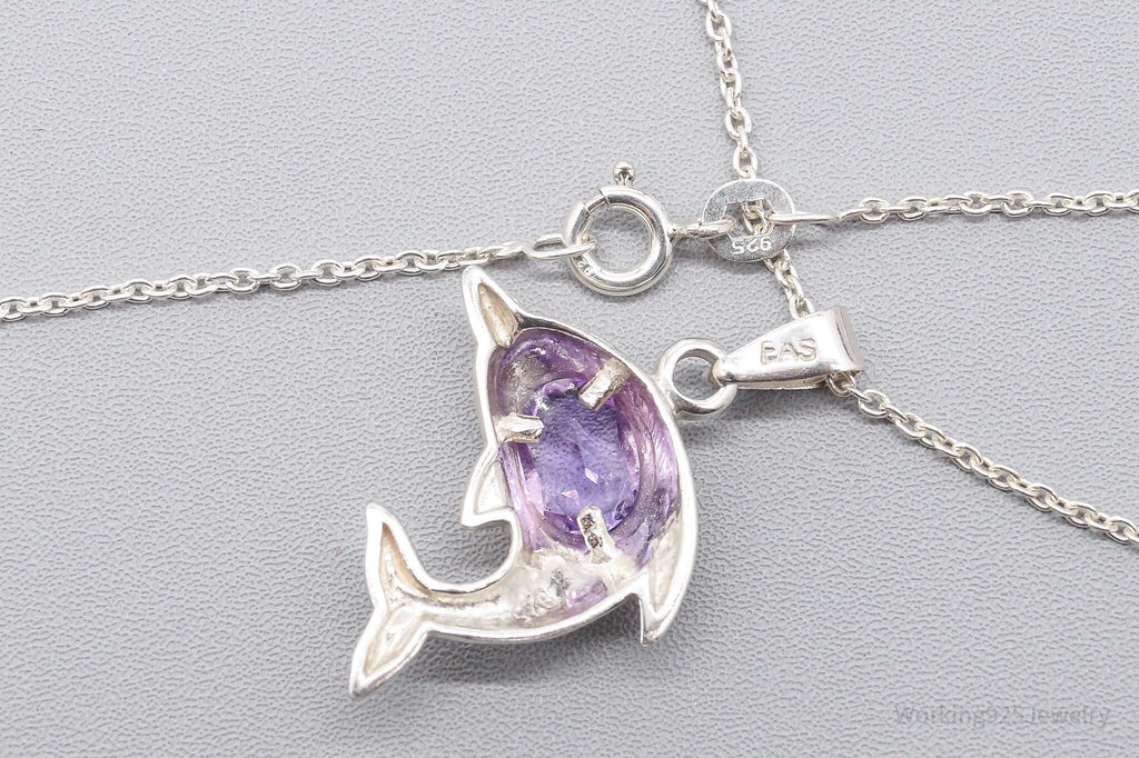 Vintage Amethyst Dolphin Sterling Silver Necklace 18"