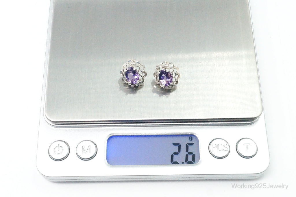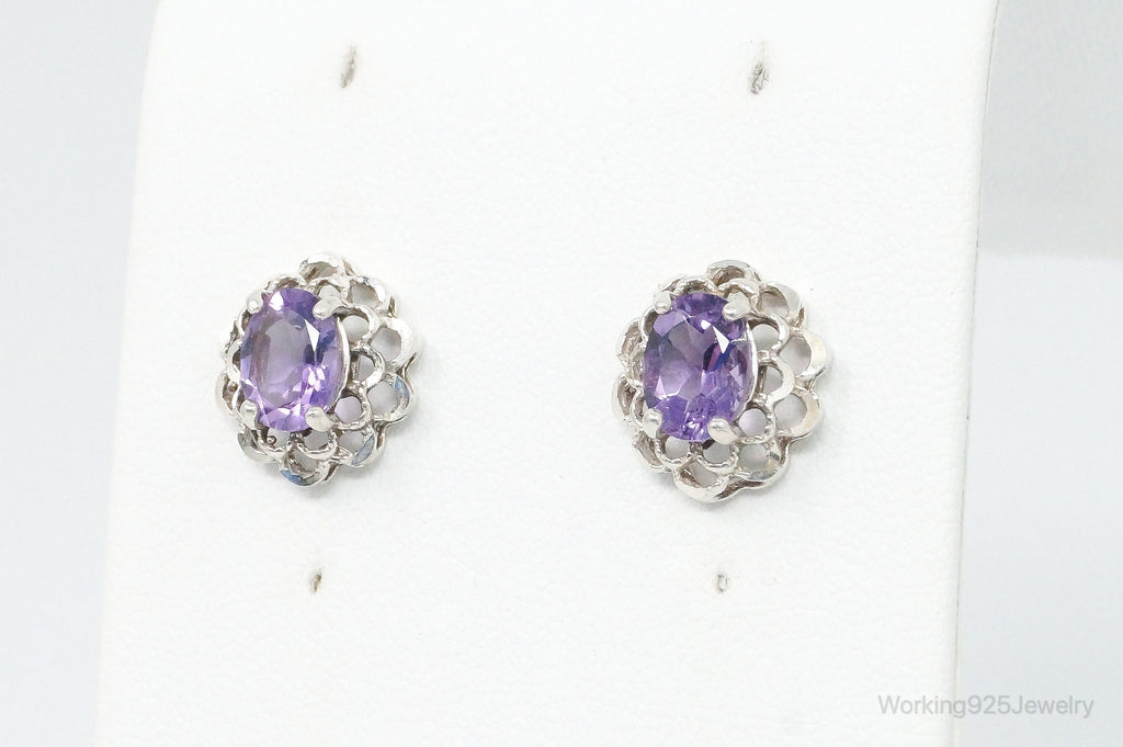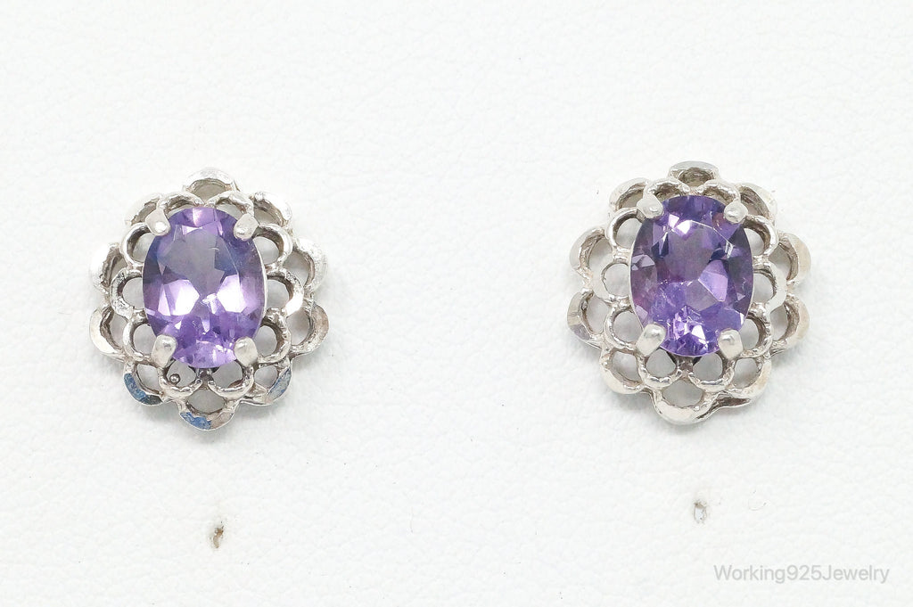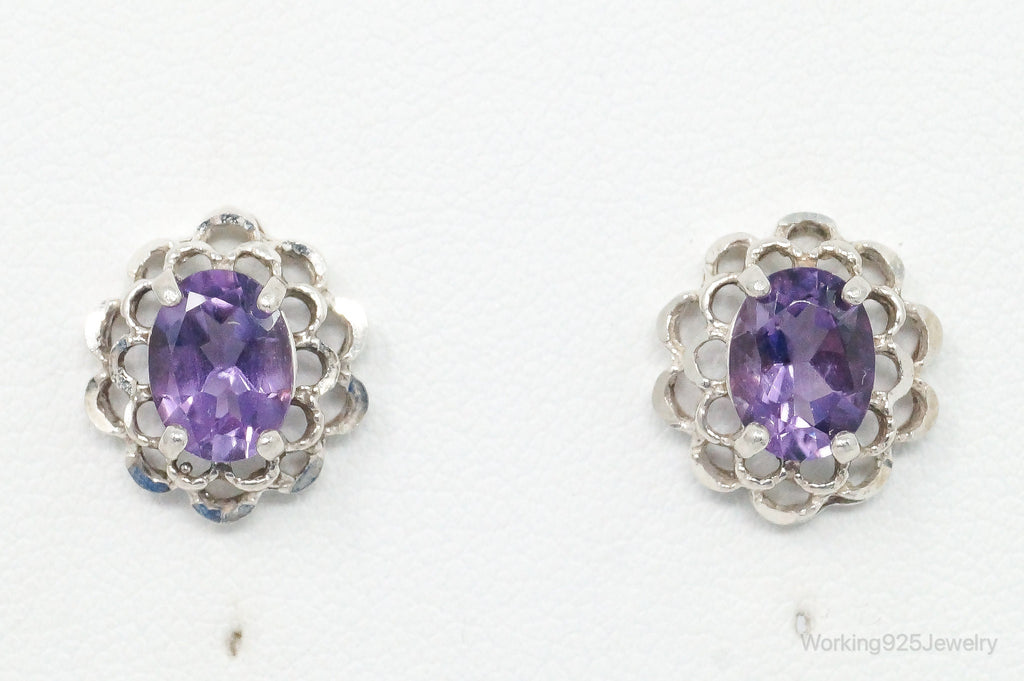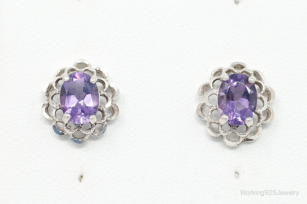 Vintage Amethyst Flower Sterling Silver Earrings