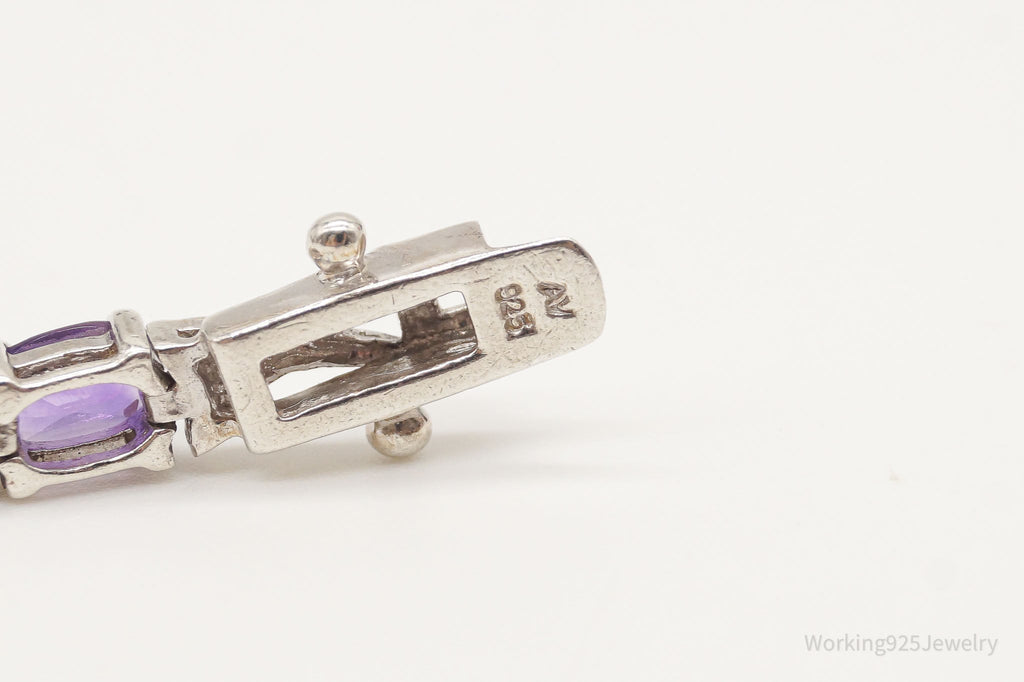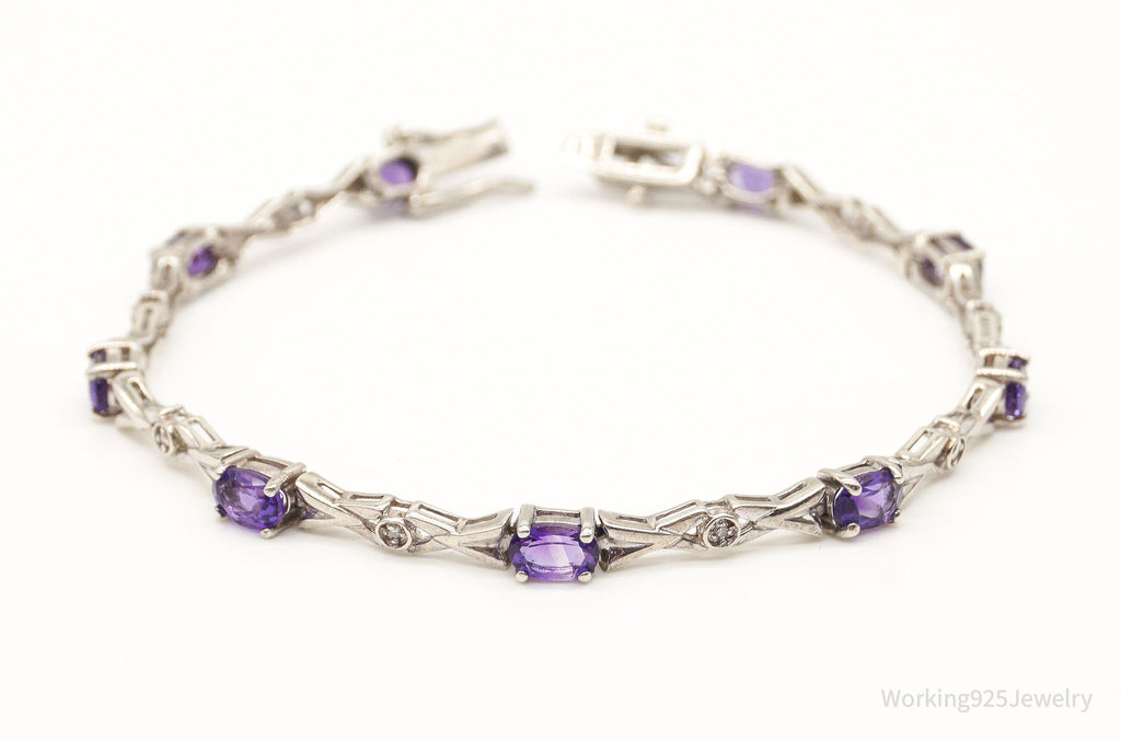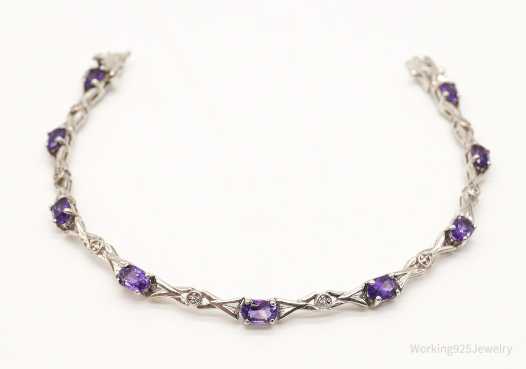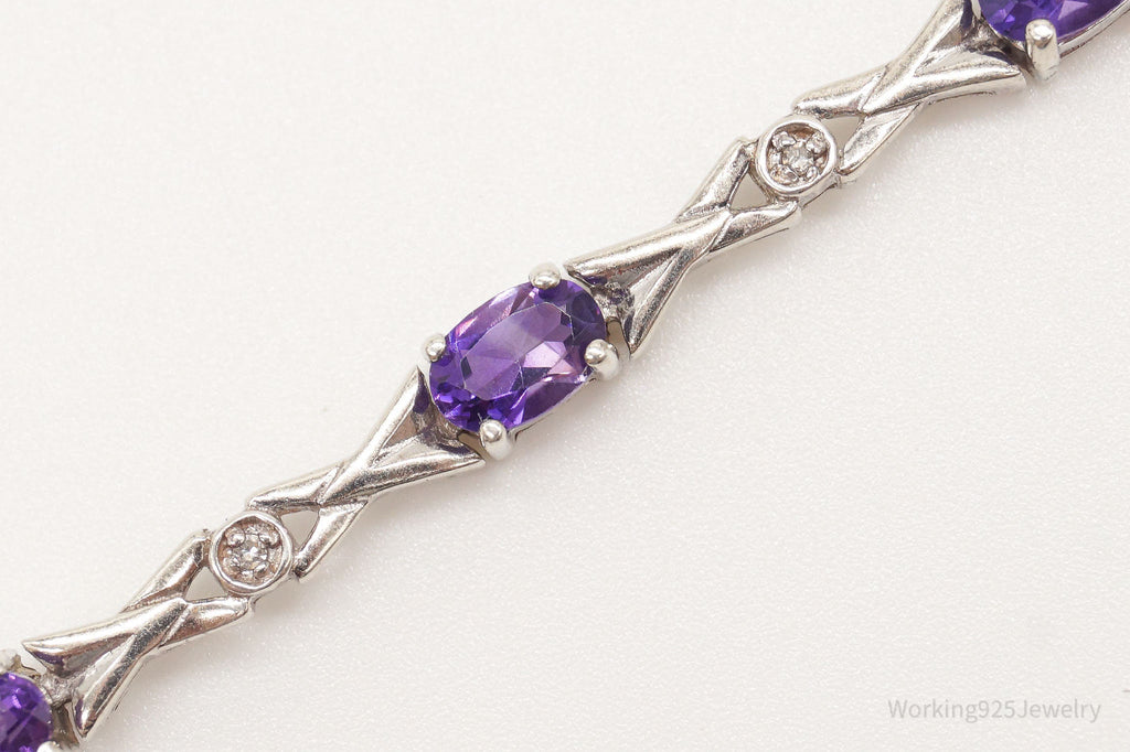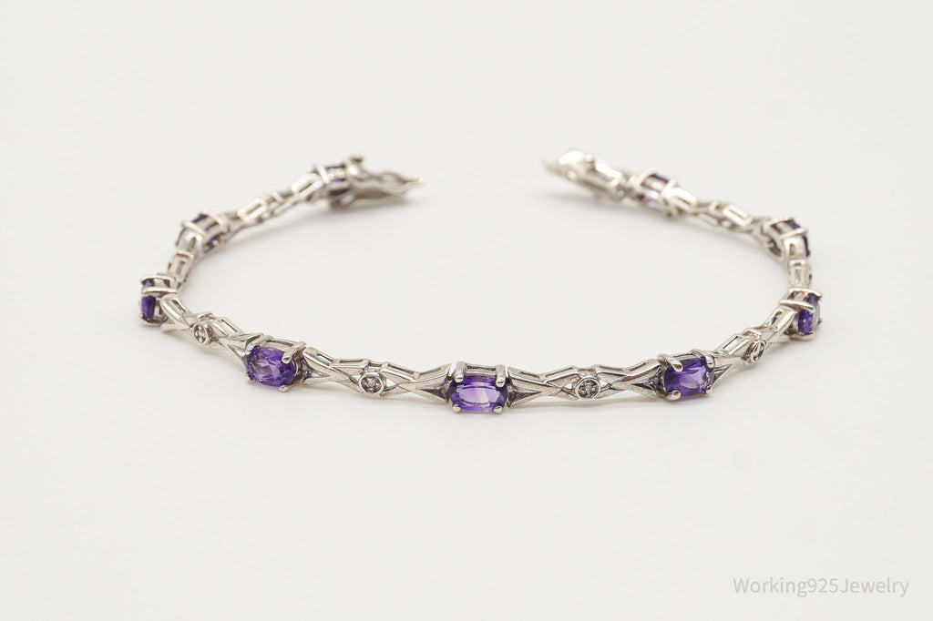 Vintage Amethyst Two Diamonds Sterling Silver Bracelet