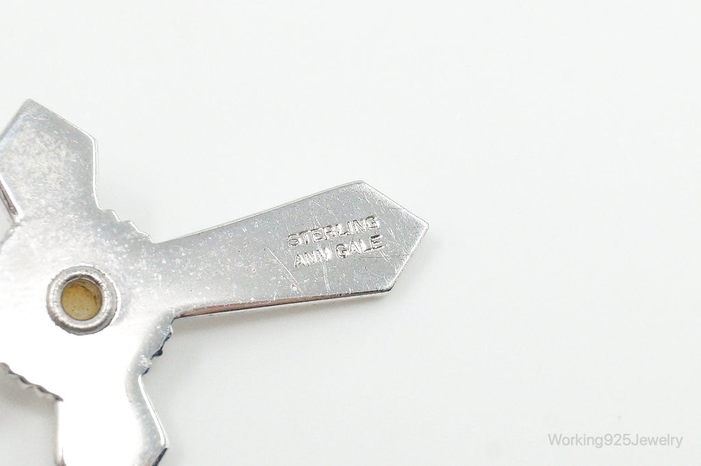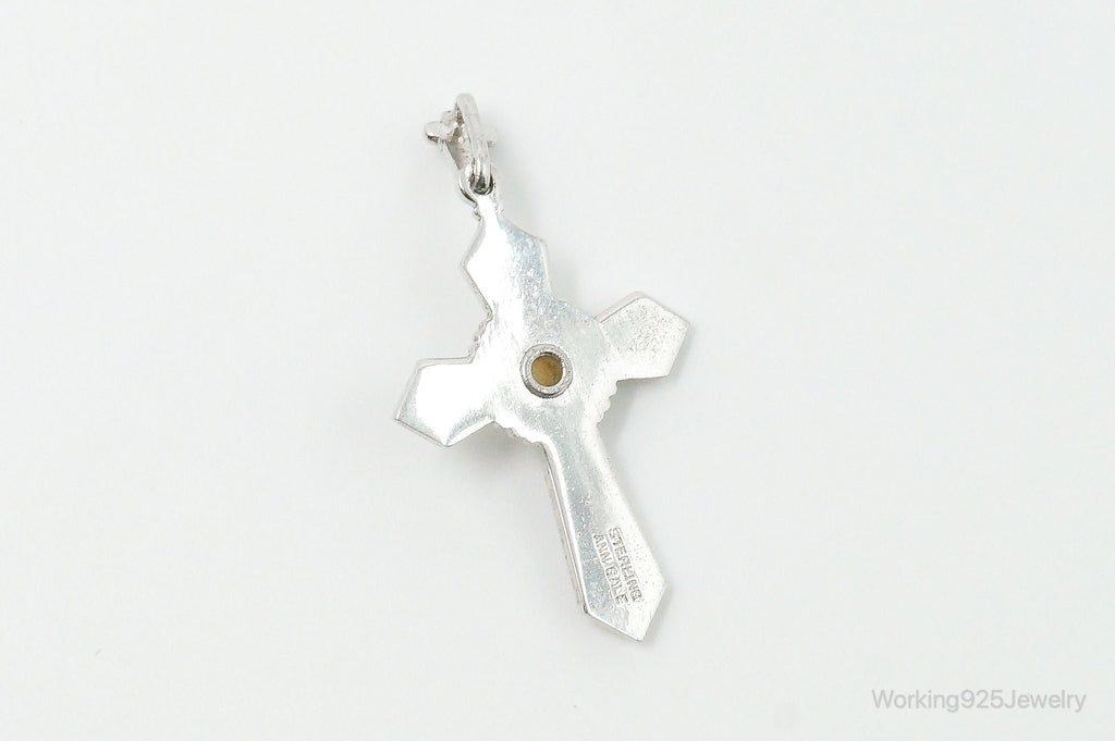 Vintage ANN GALE Pearl Cross Sterling Silver Necklace Pendant
