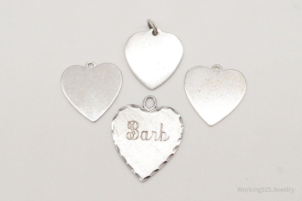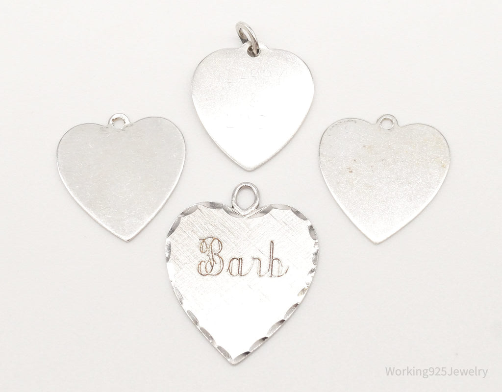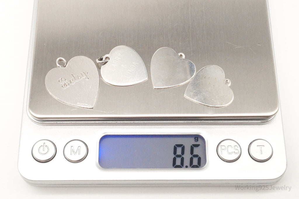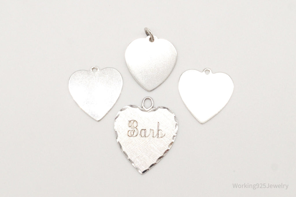 Vintage Antique Flat Hearts Sterling Silver Charms Set Lot
