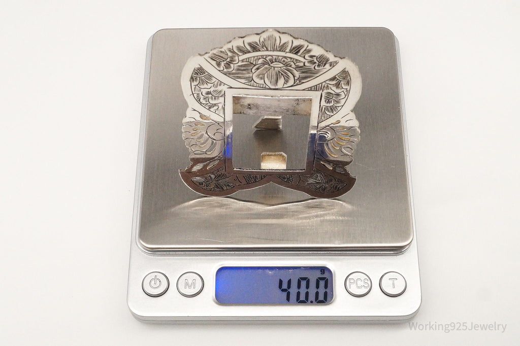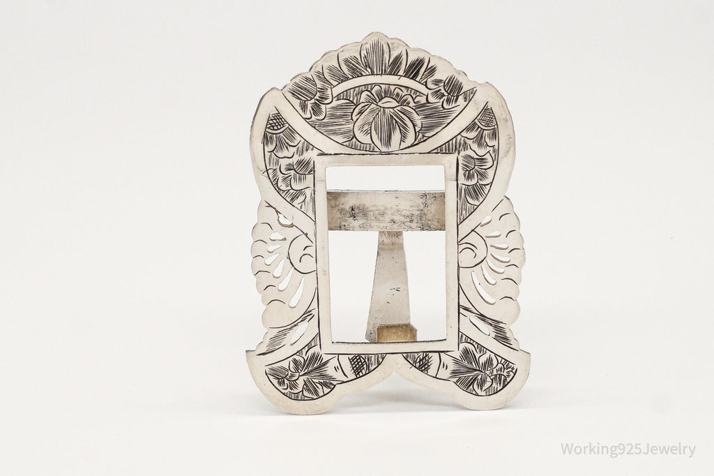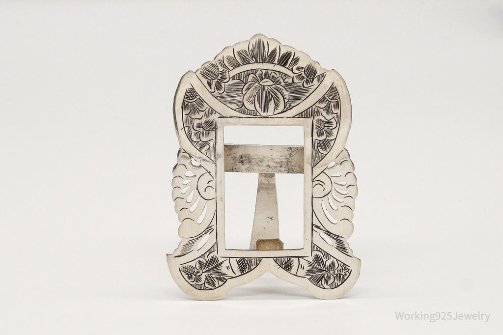 Vintage Antique Silver Floral Etched Photo Picture Frame