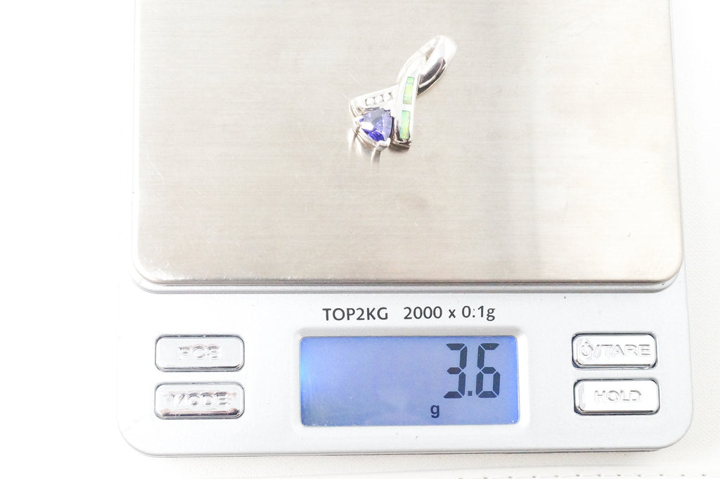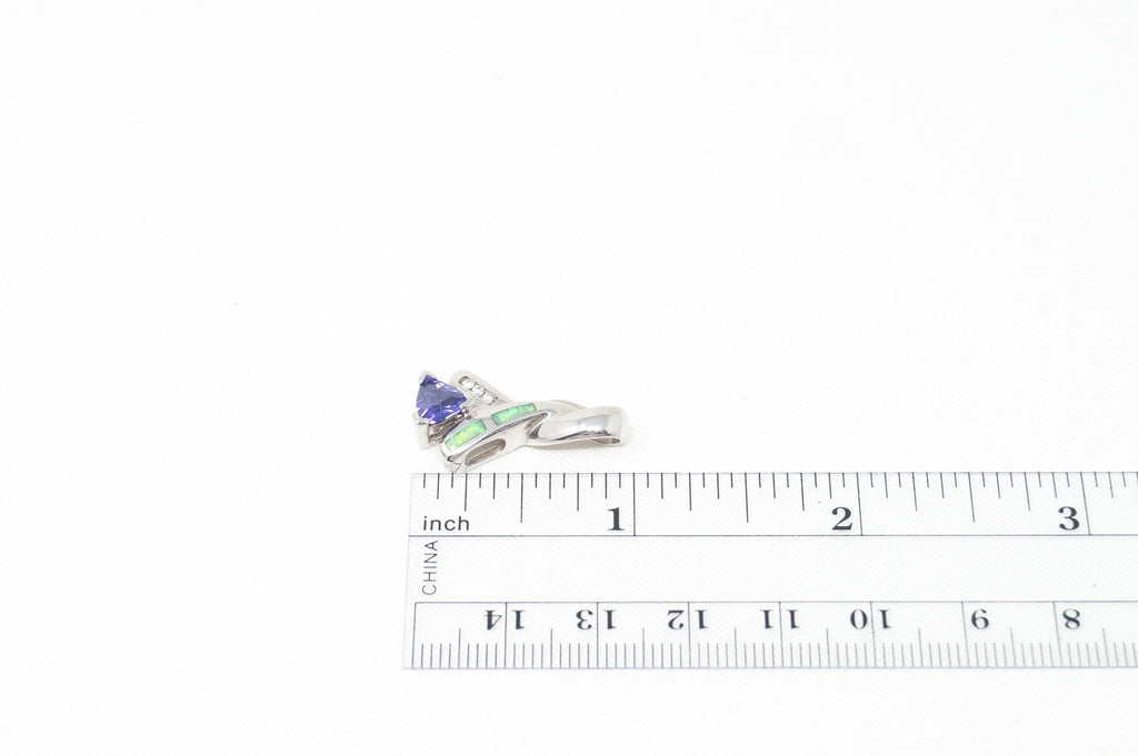 Vintage Art Deco Amethyst Fire Opal CZ Sterling Silver Necklace Pendant