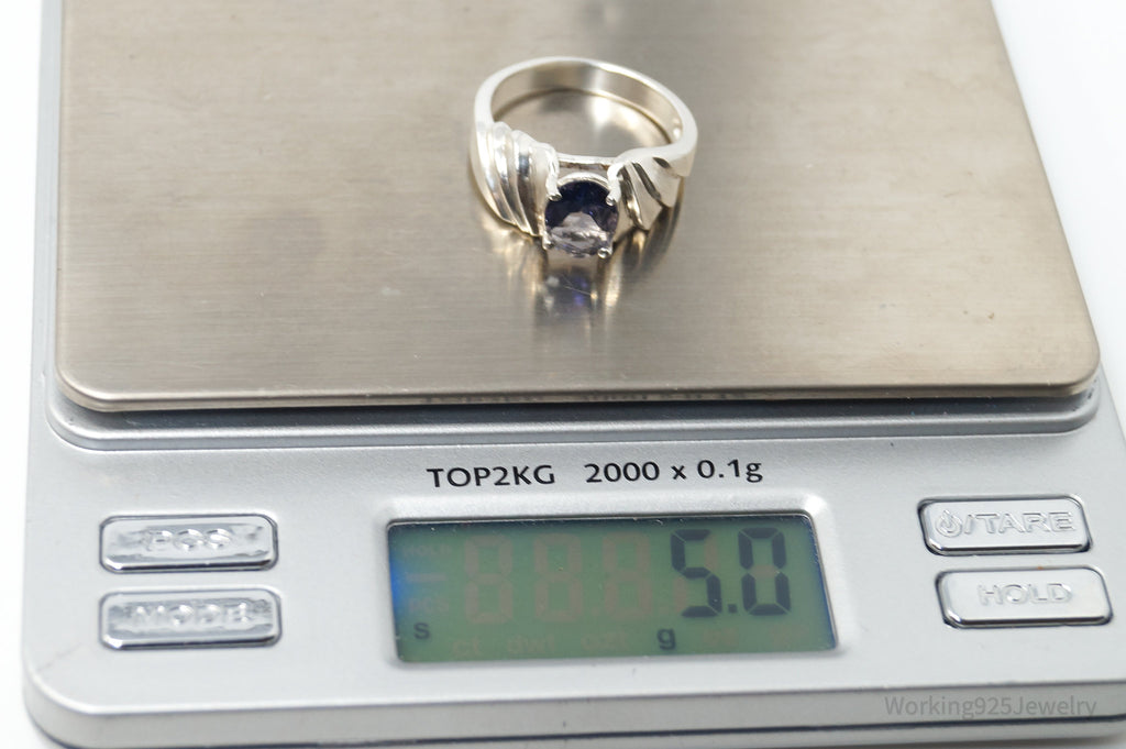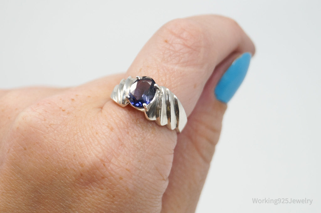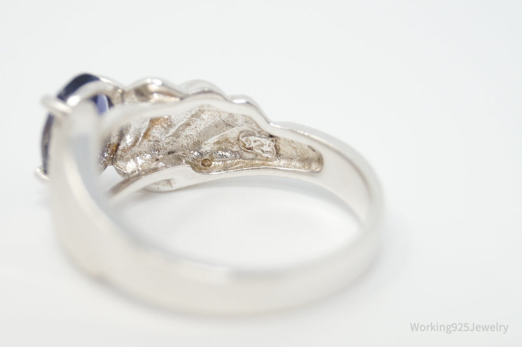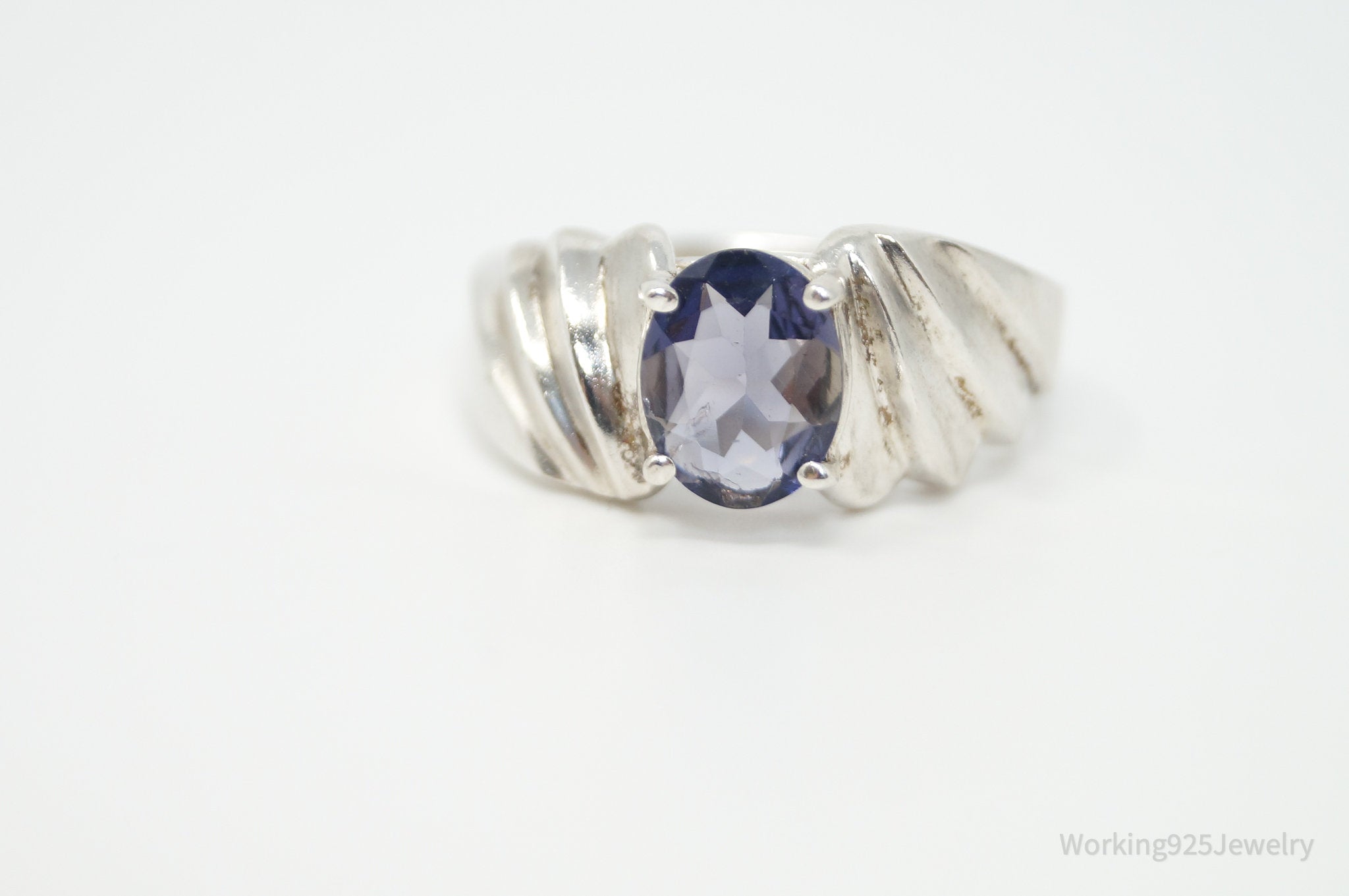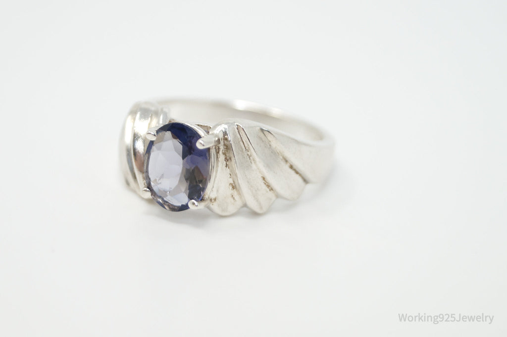 Vintage Art Deco Amethyst Sterling Silver Statement Ring - Sz 9