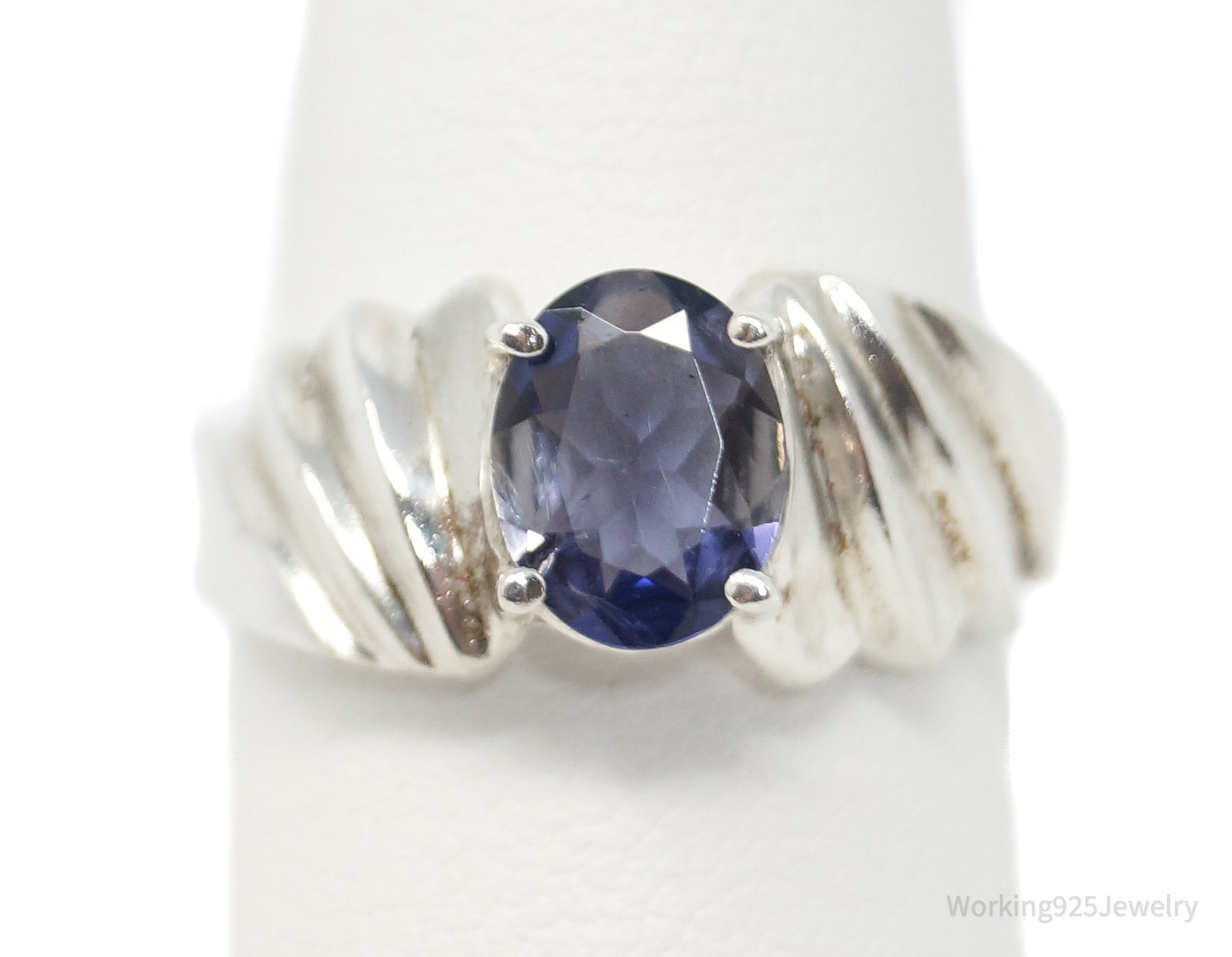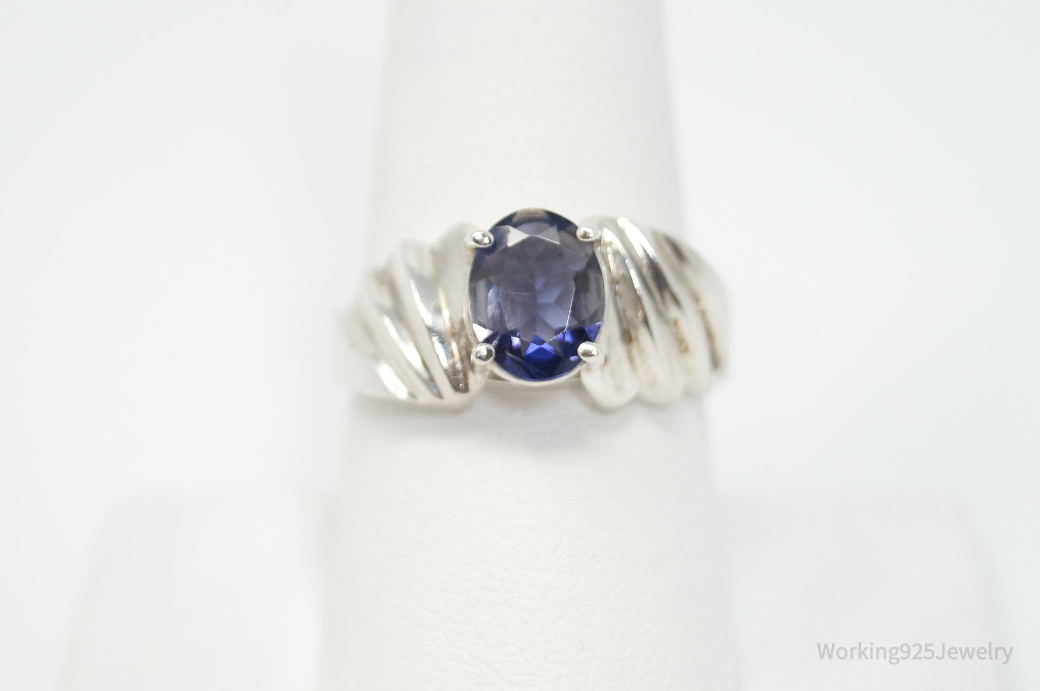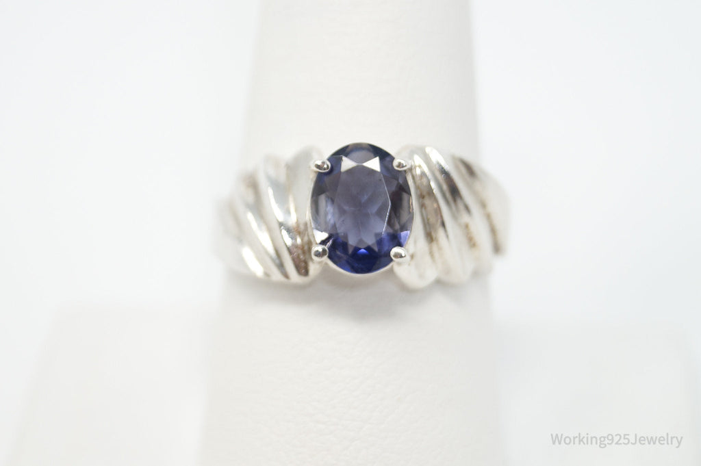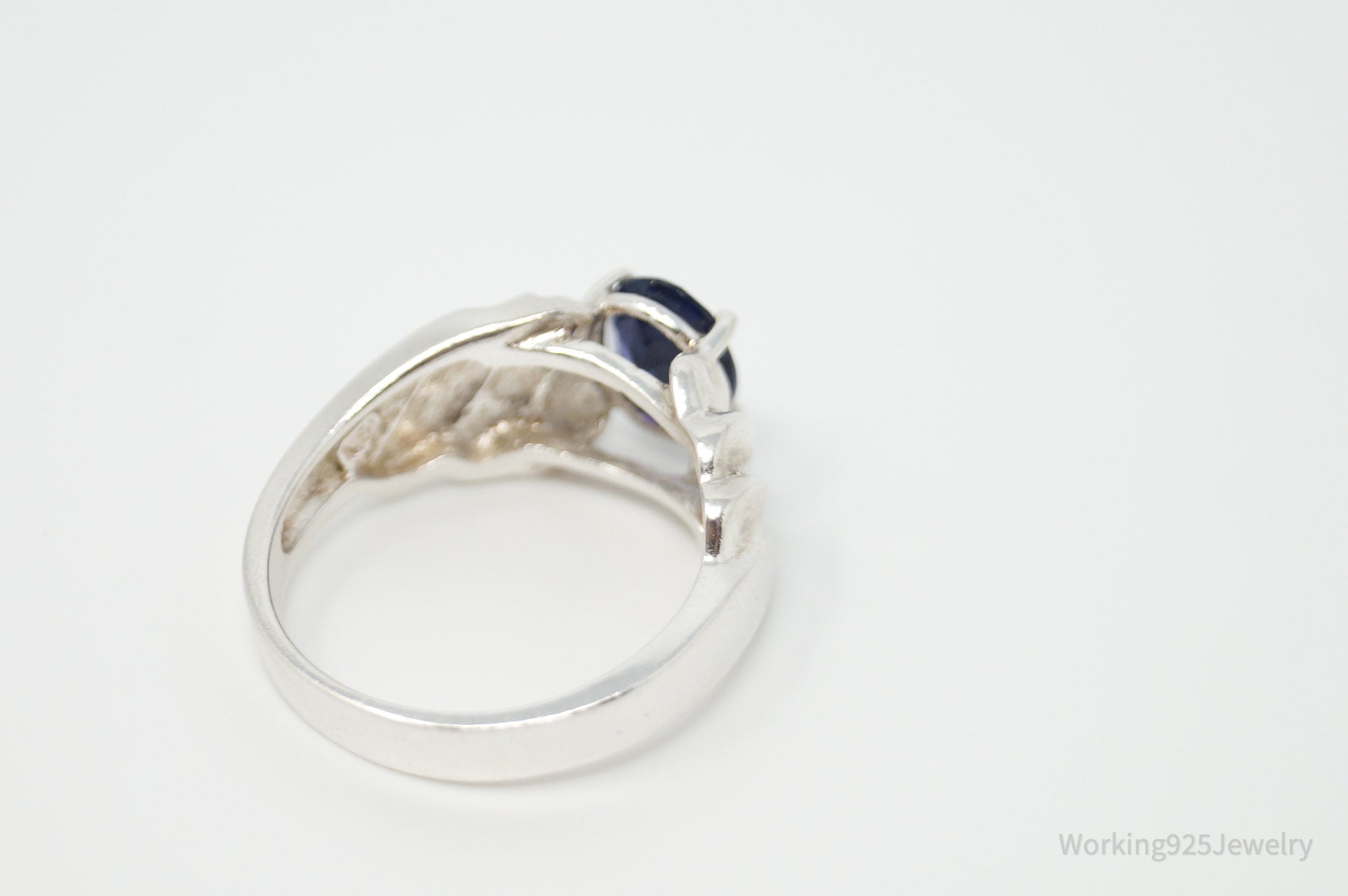 Vintage Art Deco Amethyst Sterling Silver Statement Ring - Sz 9