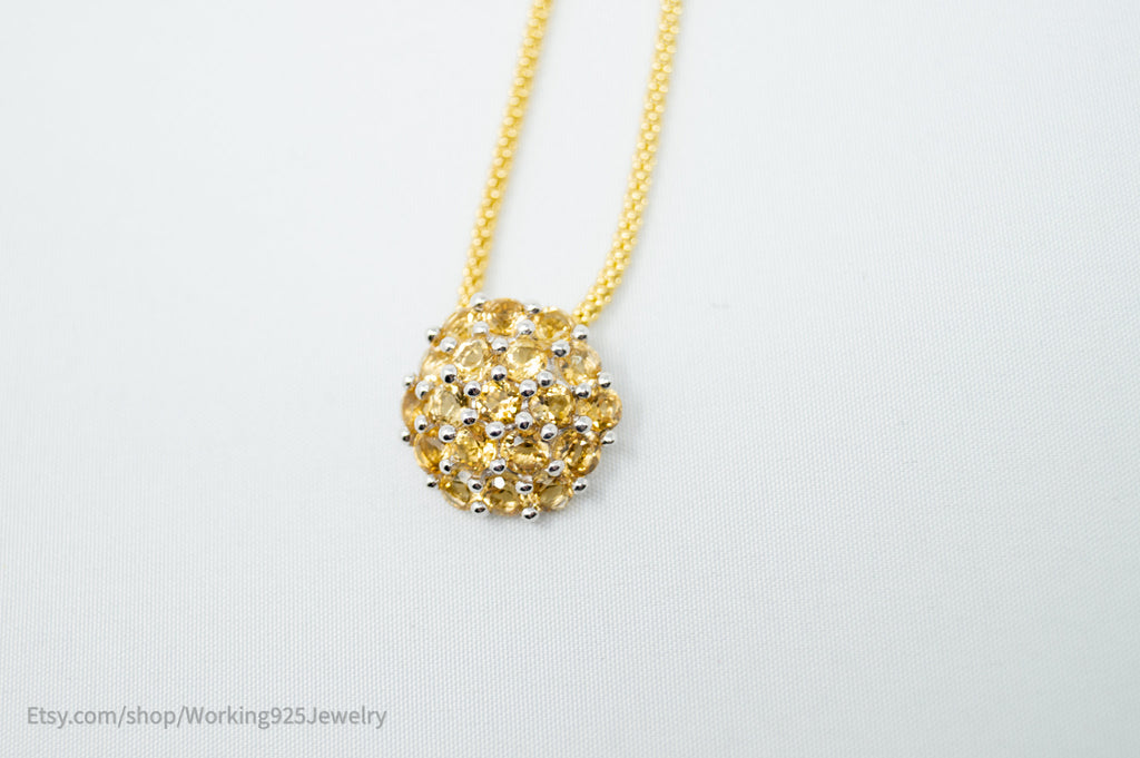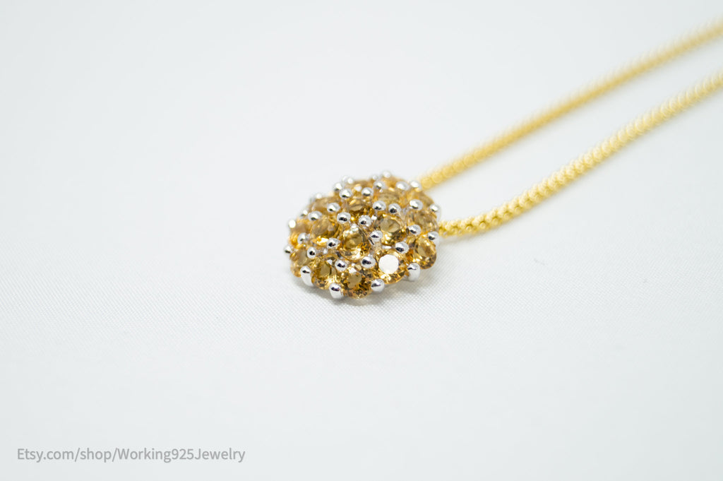 Vintage Art Deco Citrine Accented Gold Vermeil Sterling Silver Necklace