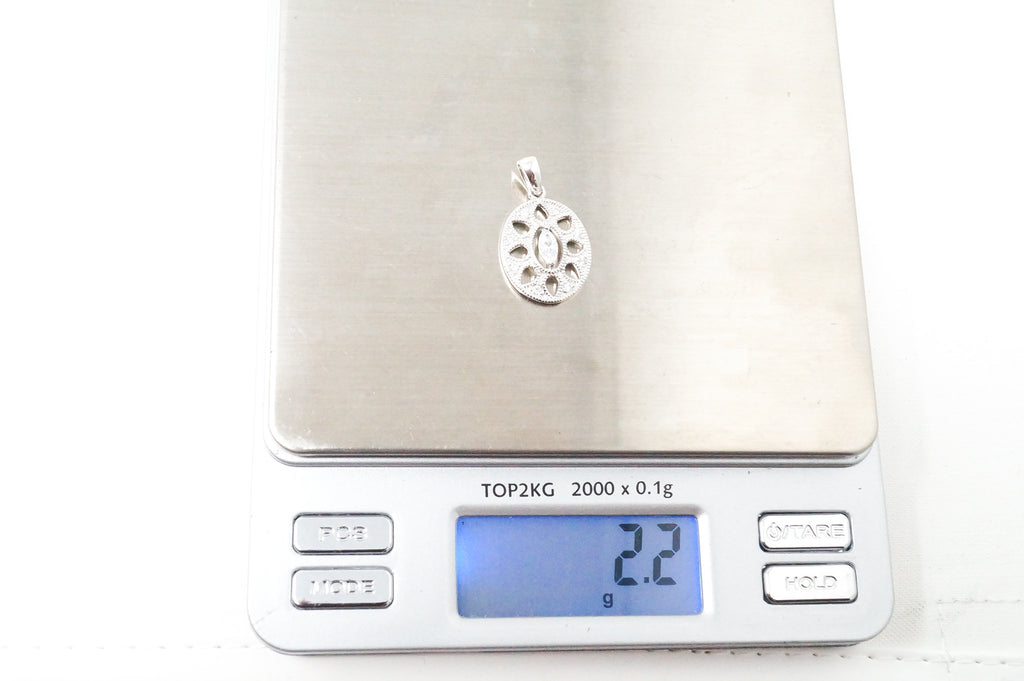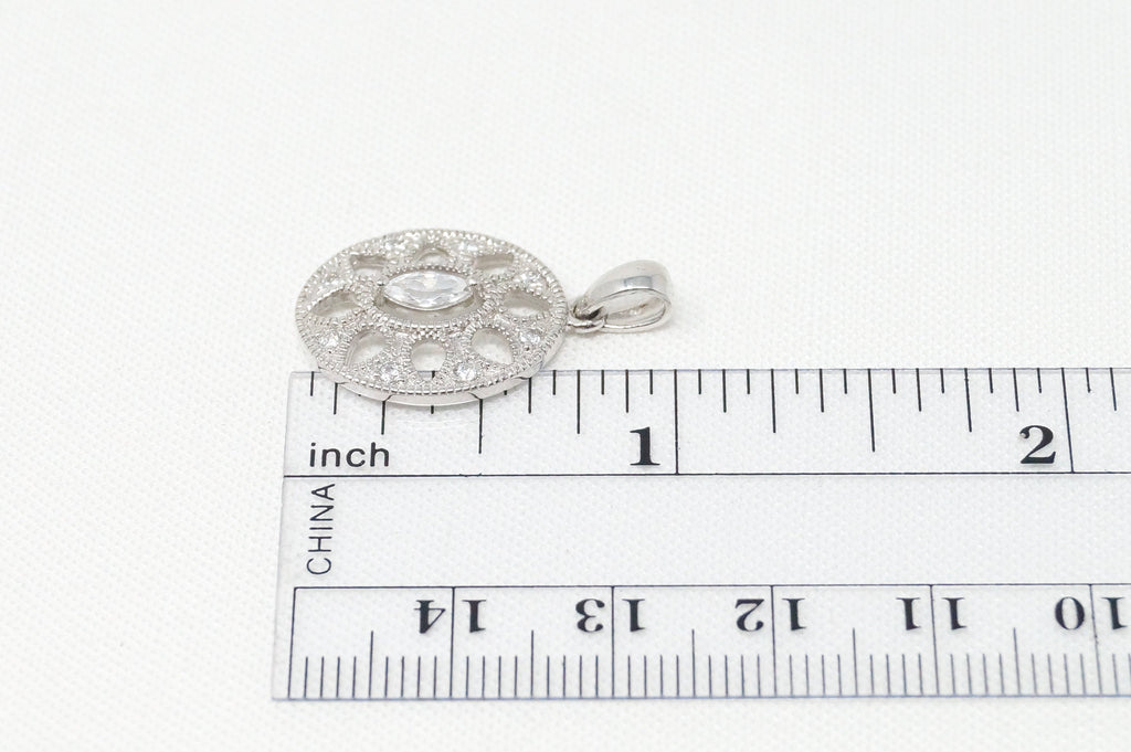 Vintage Art Deco Cubic Zirconia Cut Out Sterling Silver Necklace Pendant