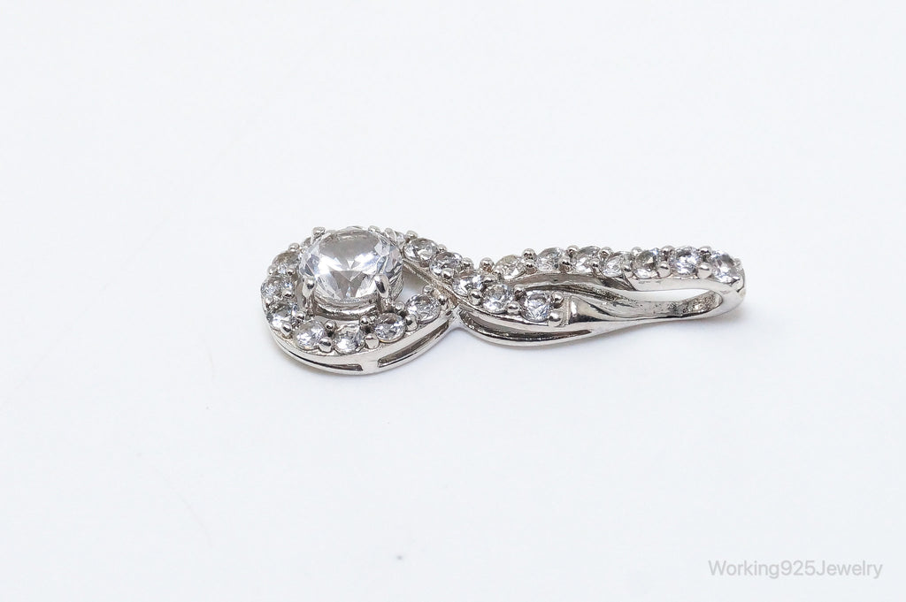 Vintage Art Deco Cubic Zirconia Sterling Silver Necklace Pendant