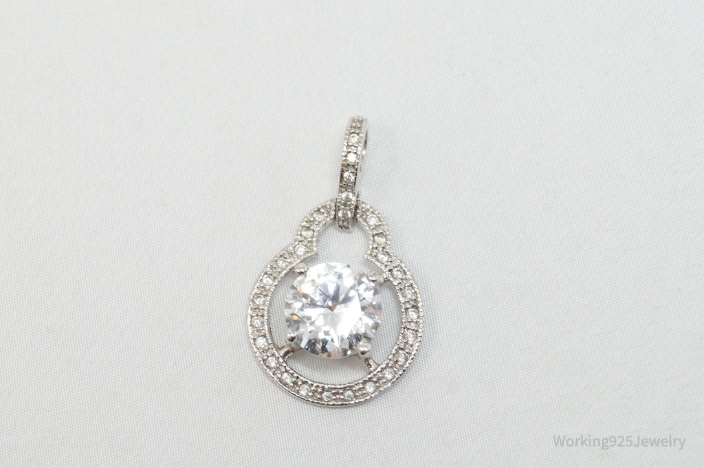 Vintage Art Deco CZ Sterling Silver Necklace Pendant