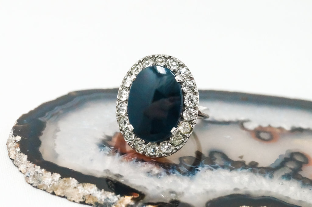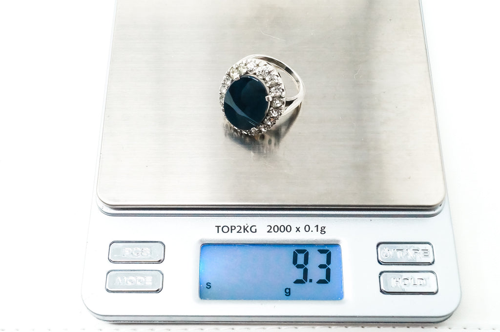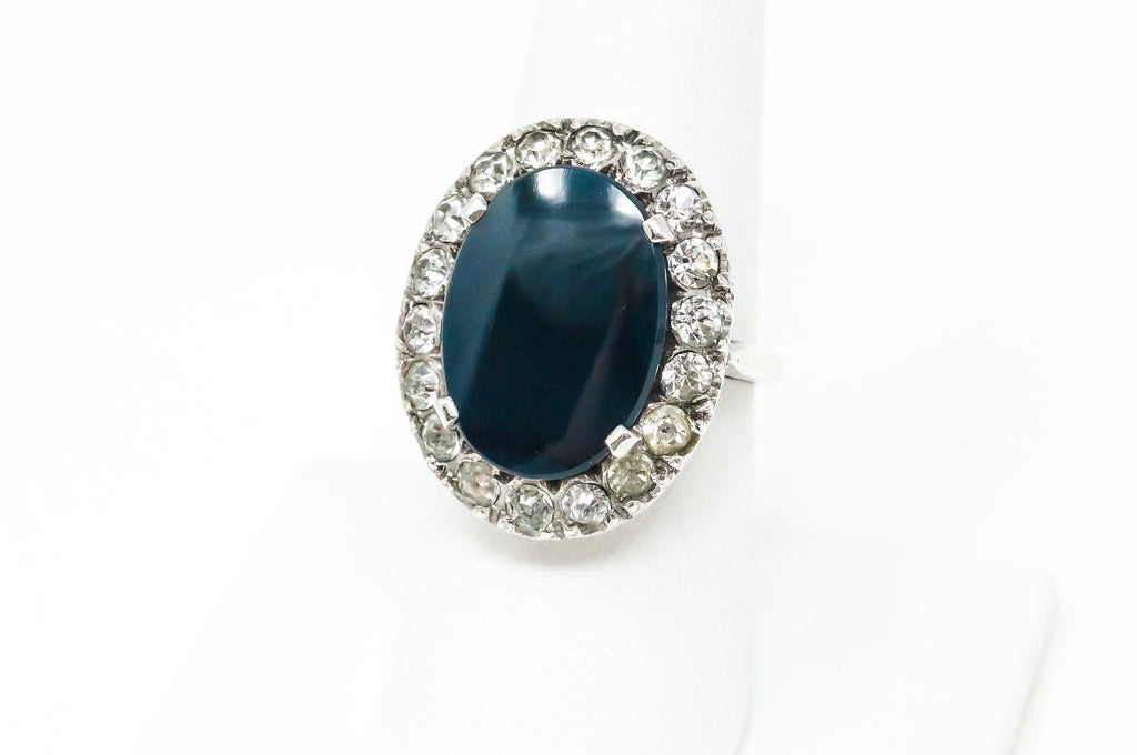 Vintage Art Deco Large Back Onyx Cubic Zirconia Sterling Silver Ring - Sz 7.5