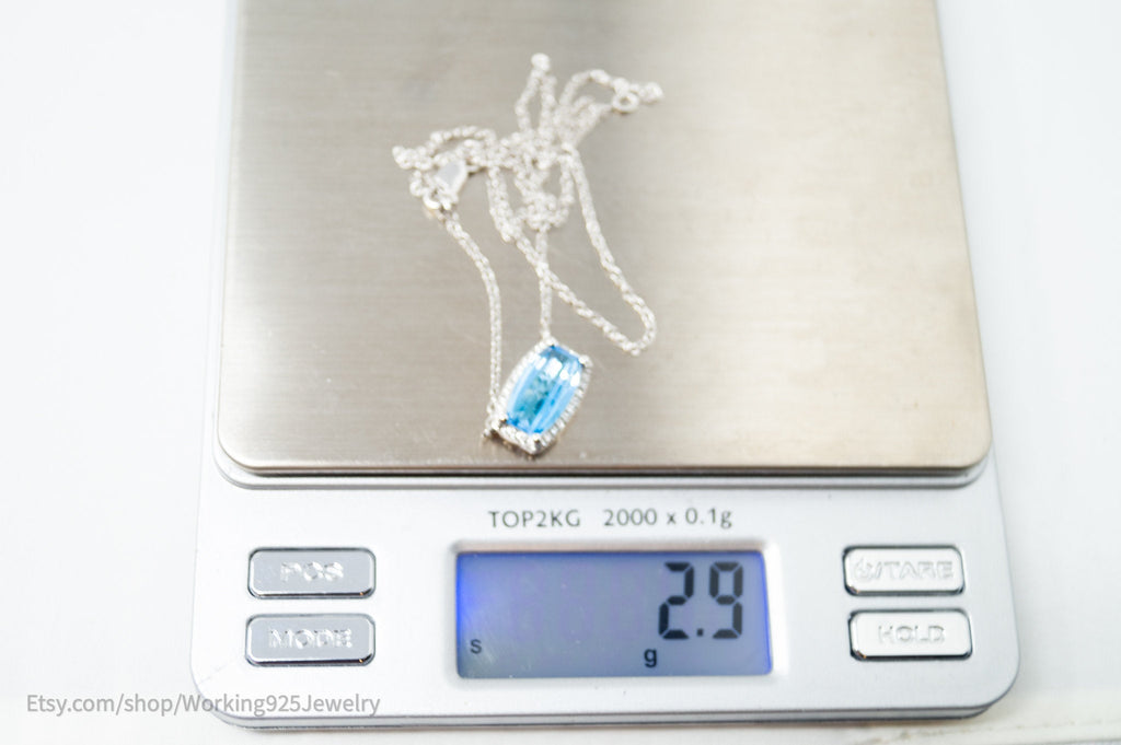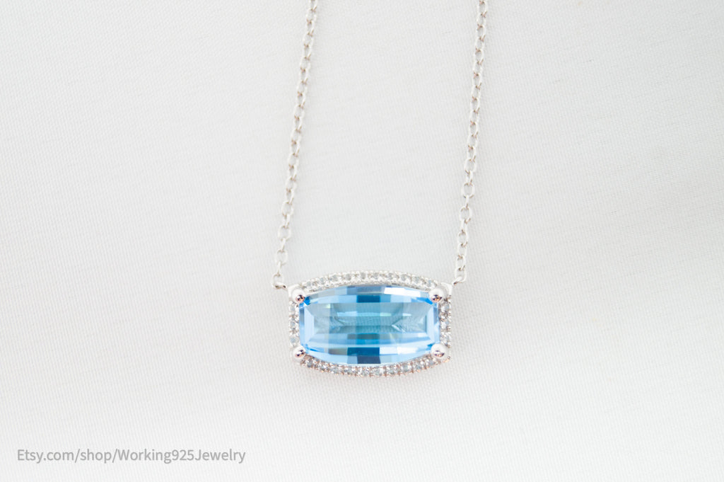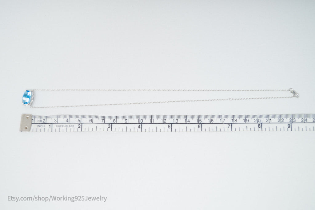 Vintage Art Deco Style Checkerboard Blue Topaz CZ Sterling Silver Necklace