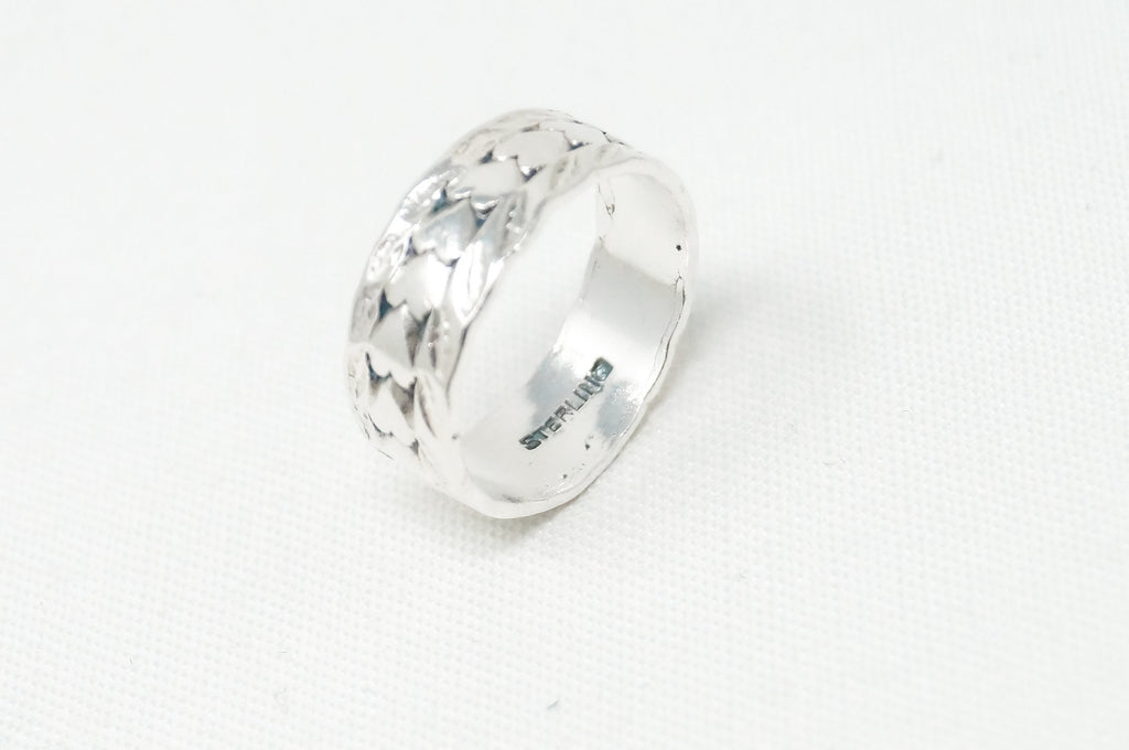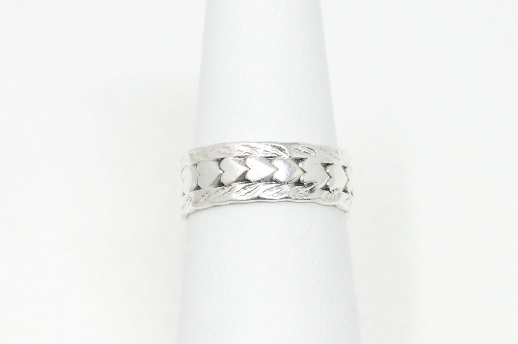 Vintage Art Nouveau Heart Pattern Sterling Silver Band Ring - Sz 6.25 -784171016