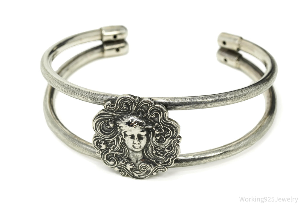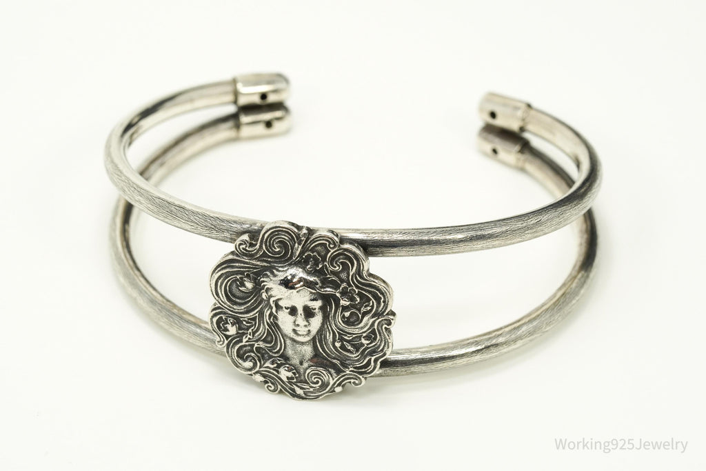 Vintage Art Nouveau Style Sterling Silver Cuff Bracelet 7.5"
