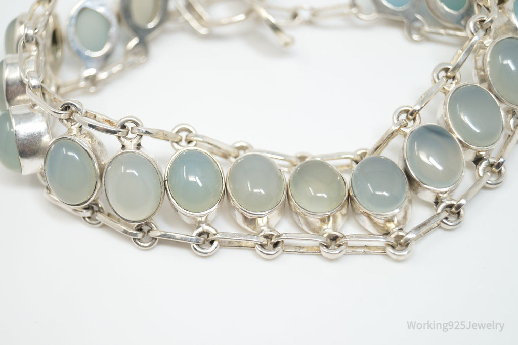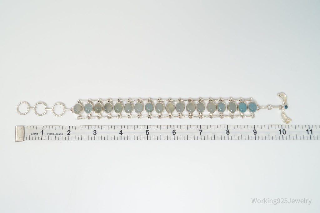 Vintage Bali Style Chalcedony Sterling Silver Toggle Bracelet