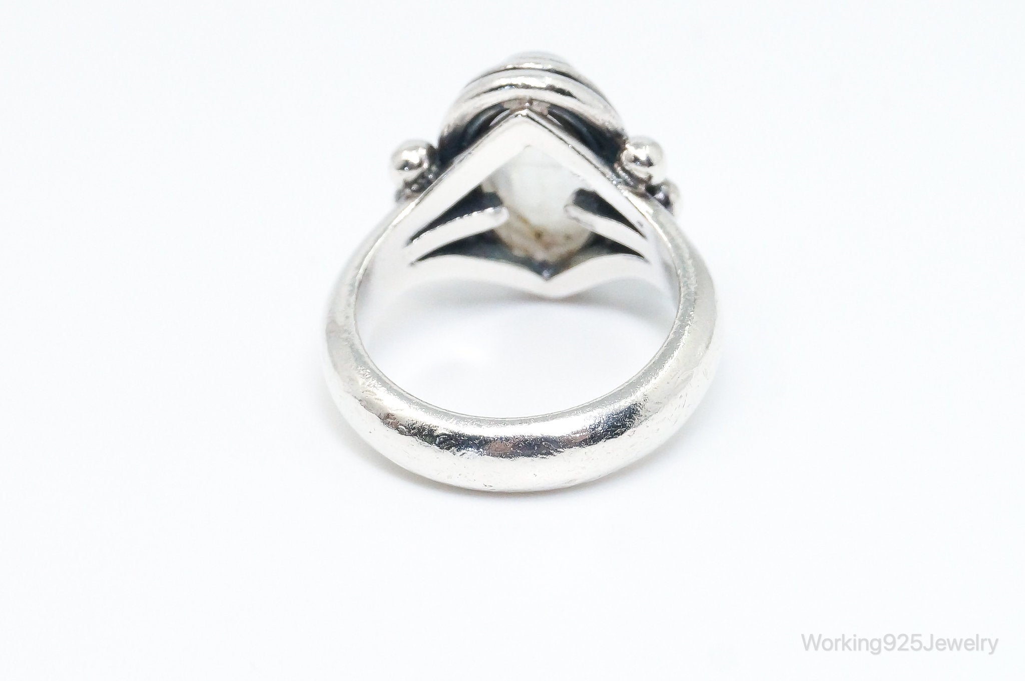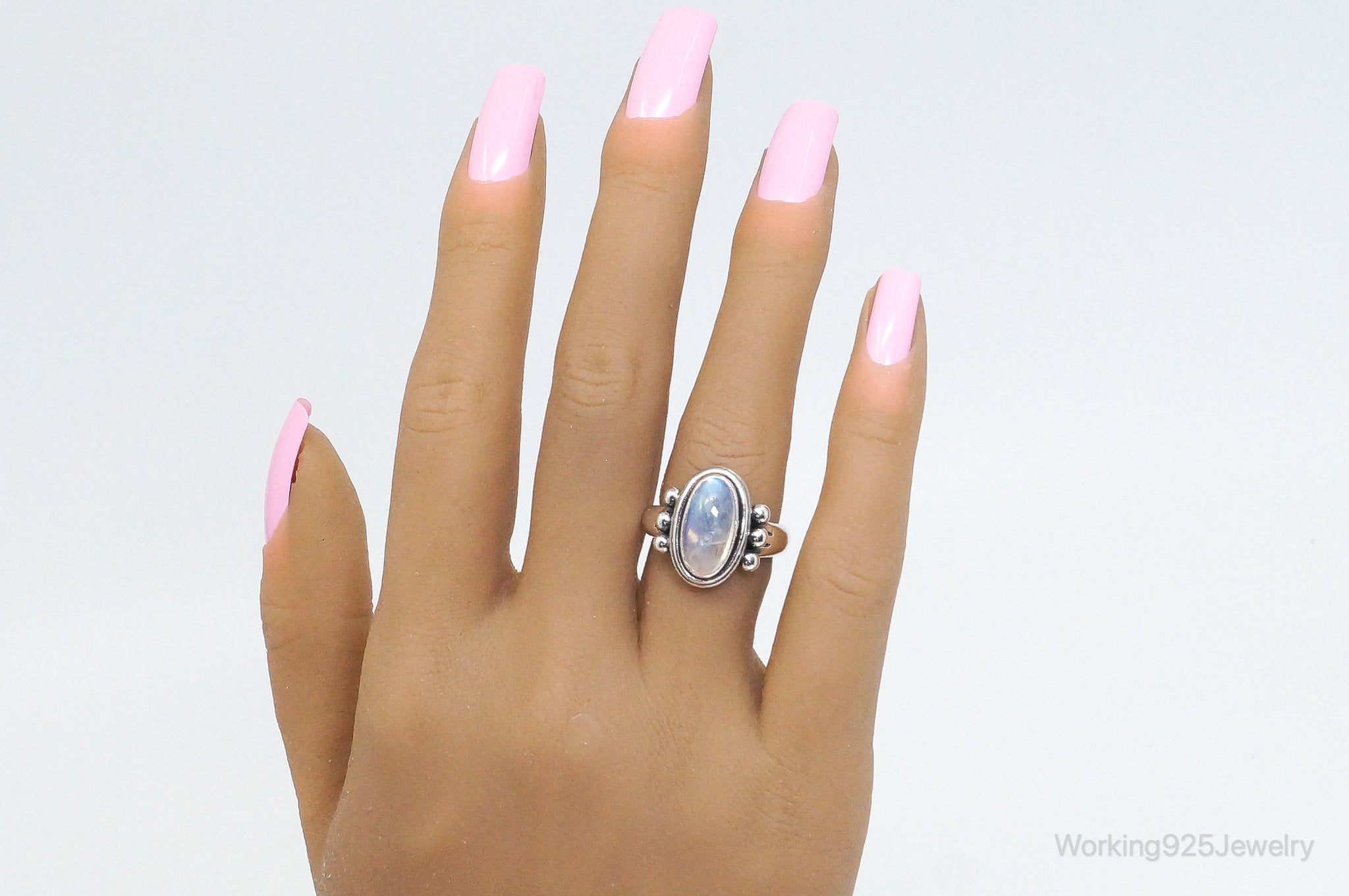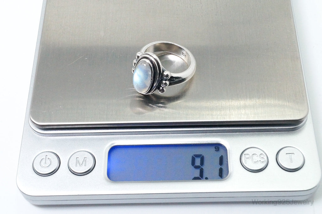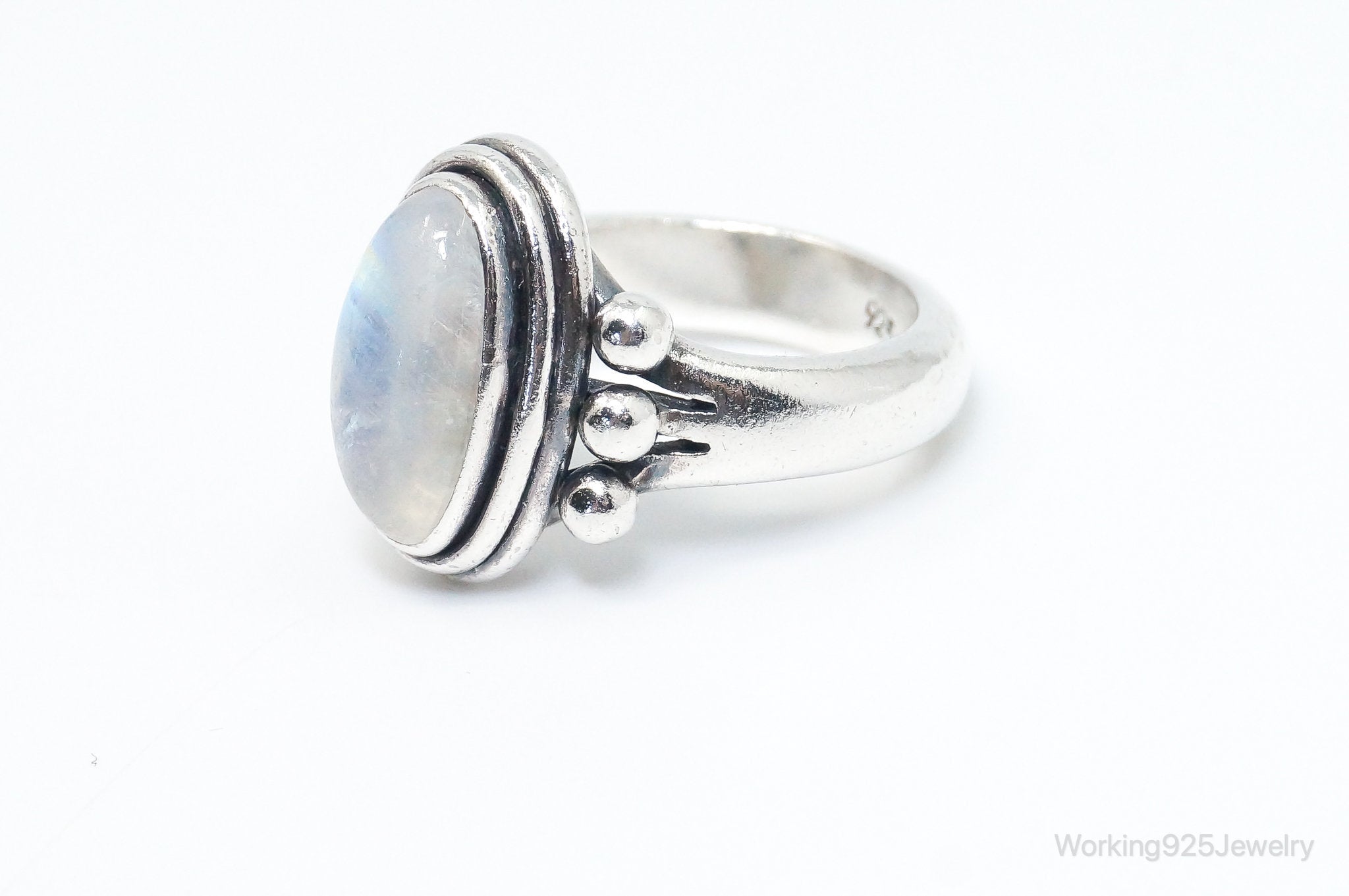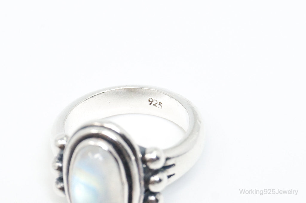 Vintage Bali Style Moonstone Sterling Silver Ring - SZ 6.75