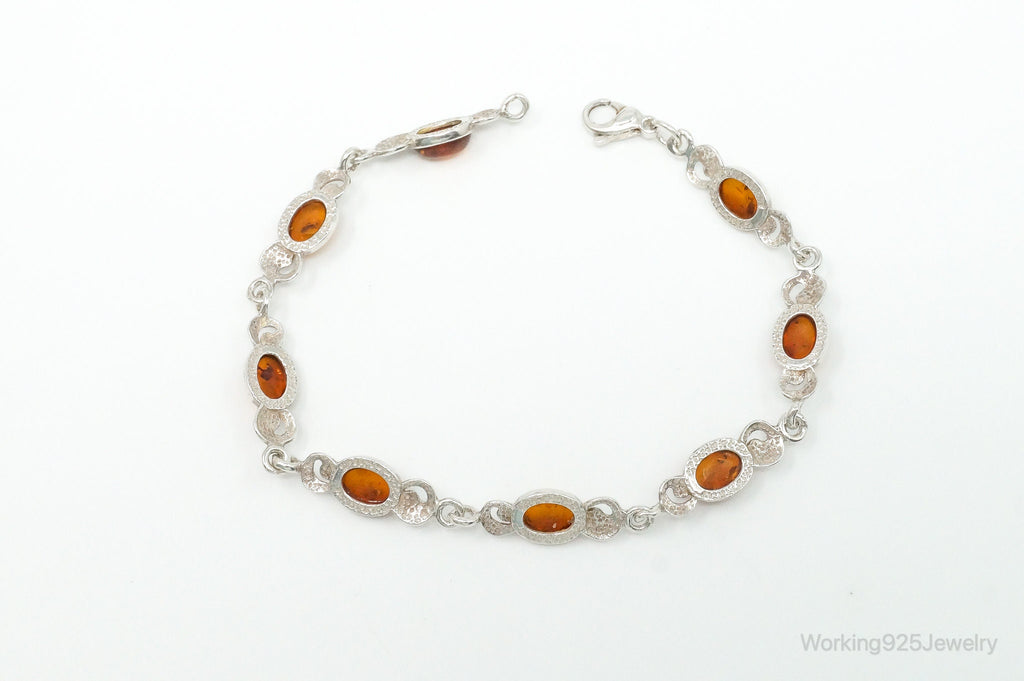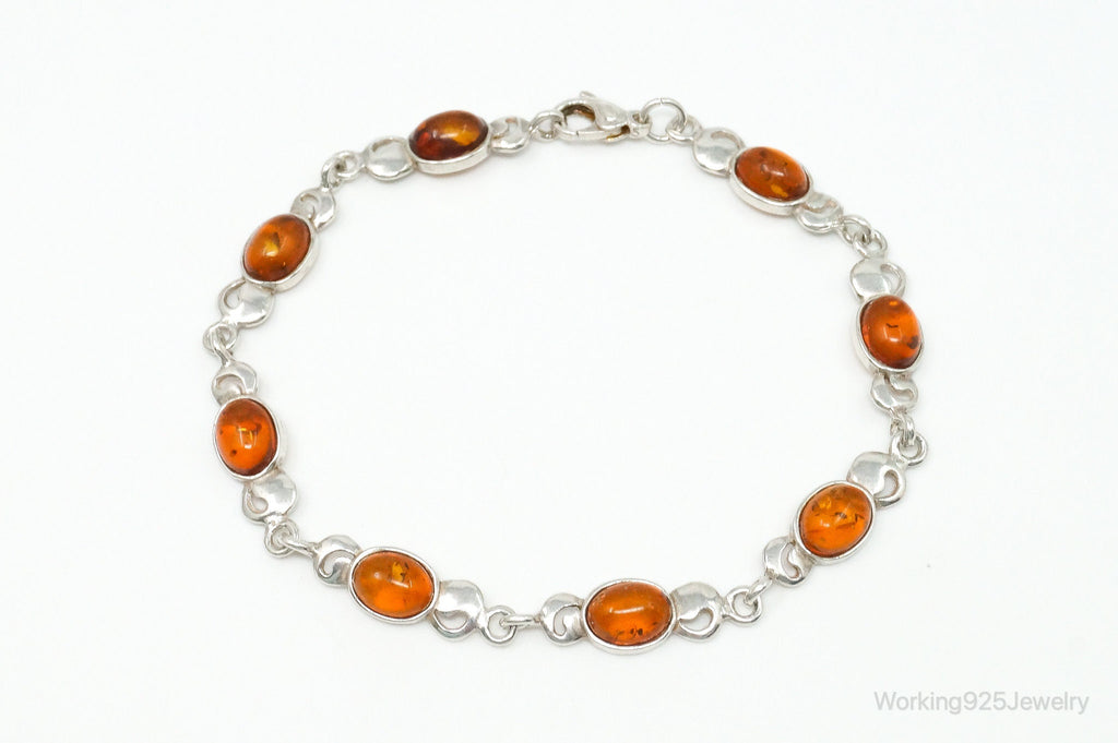 Vintage Baltic Amber Modernist Sterling Silver Bracelet